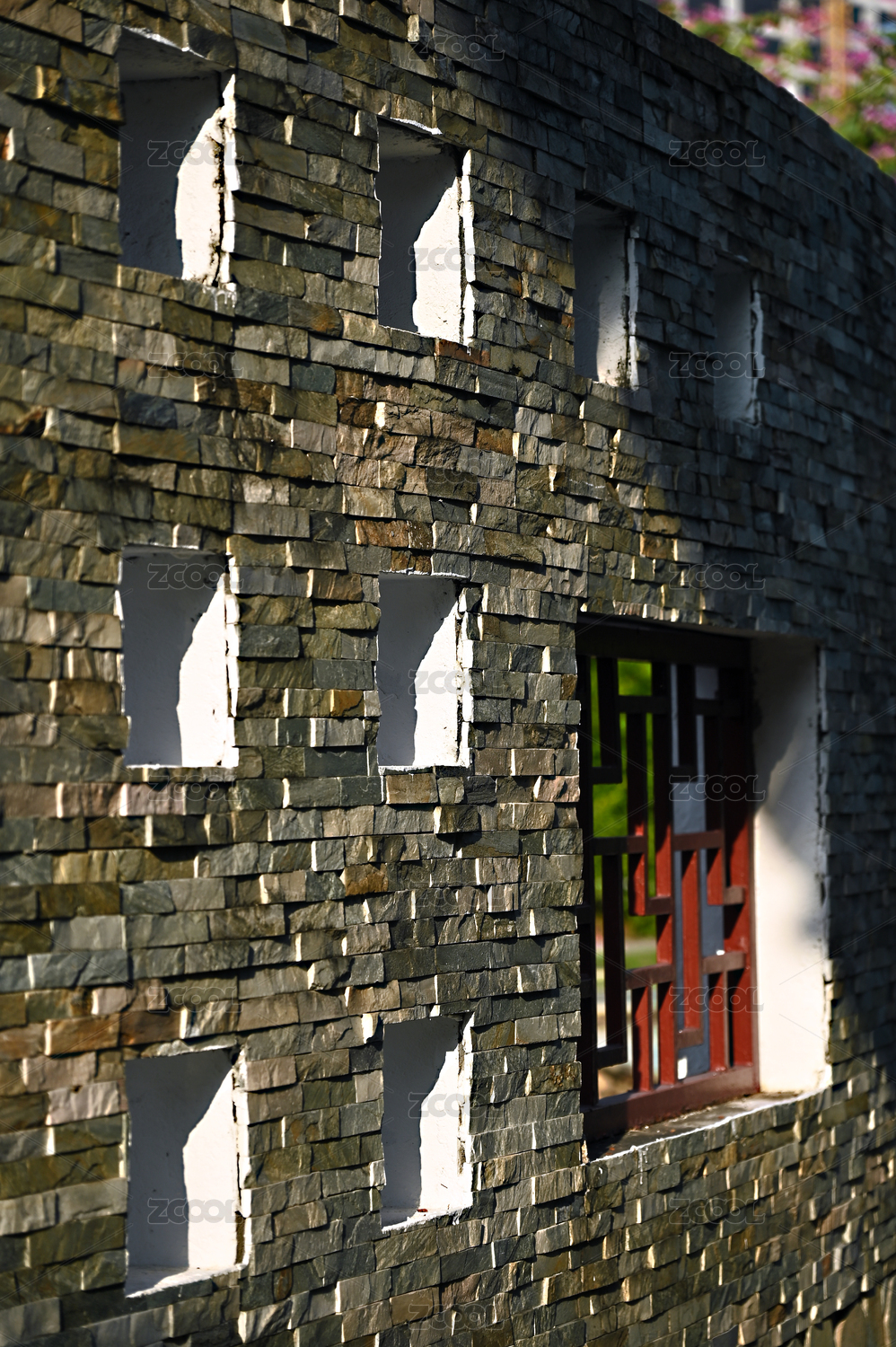 深圳洪湖公园石墙上的几何窗格