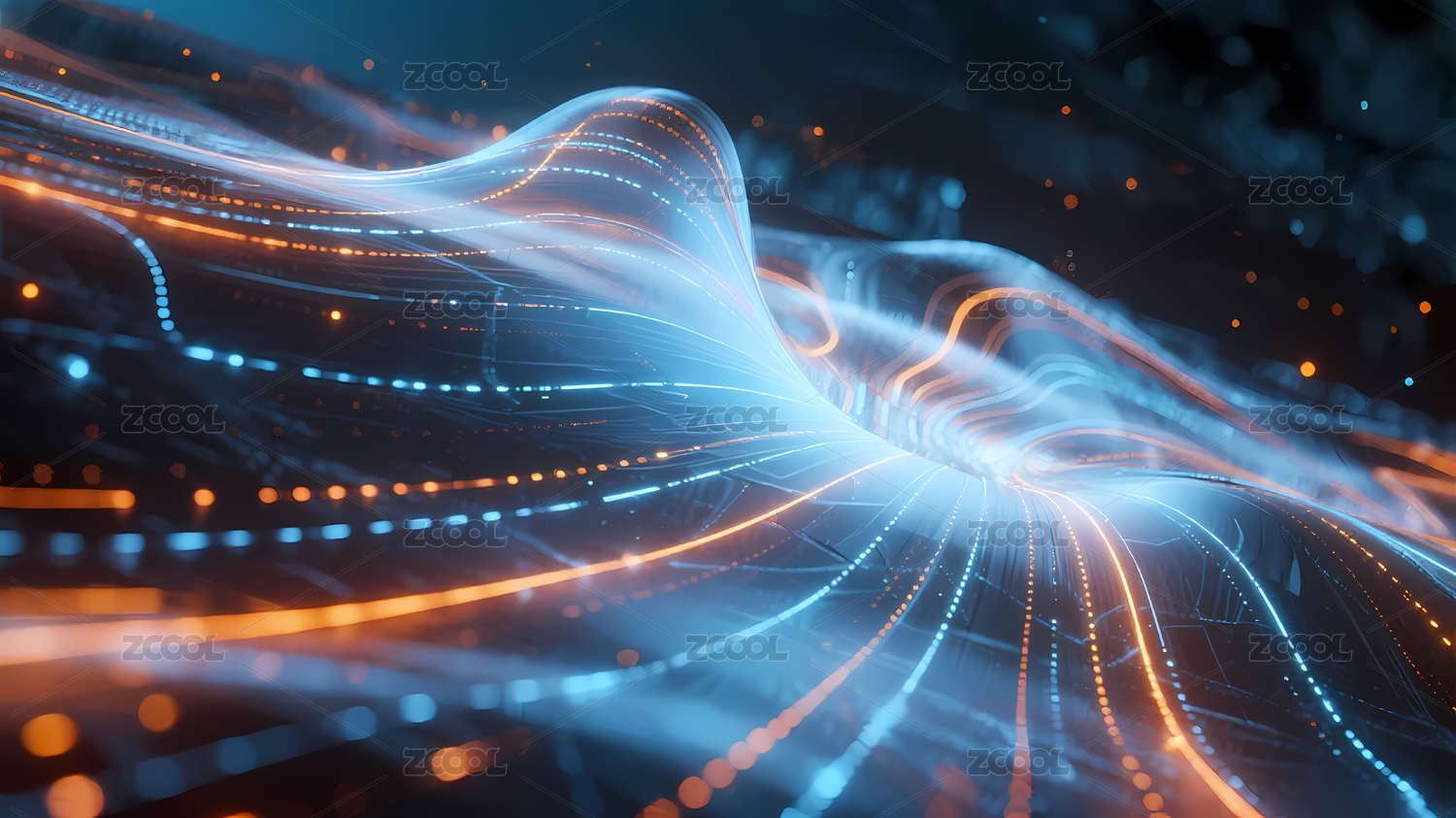 光点,未来,视觉,科技感,抽象,蓝色,虚拟,现代,橙色,动态