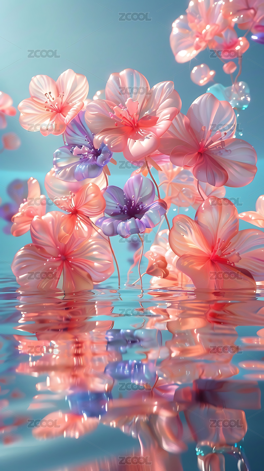 植物,3d,春天,半透明,粉红色,玻璃,花朵,山,冰山,绿色
