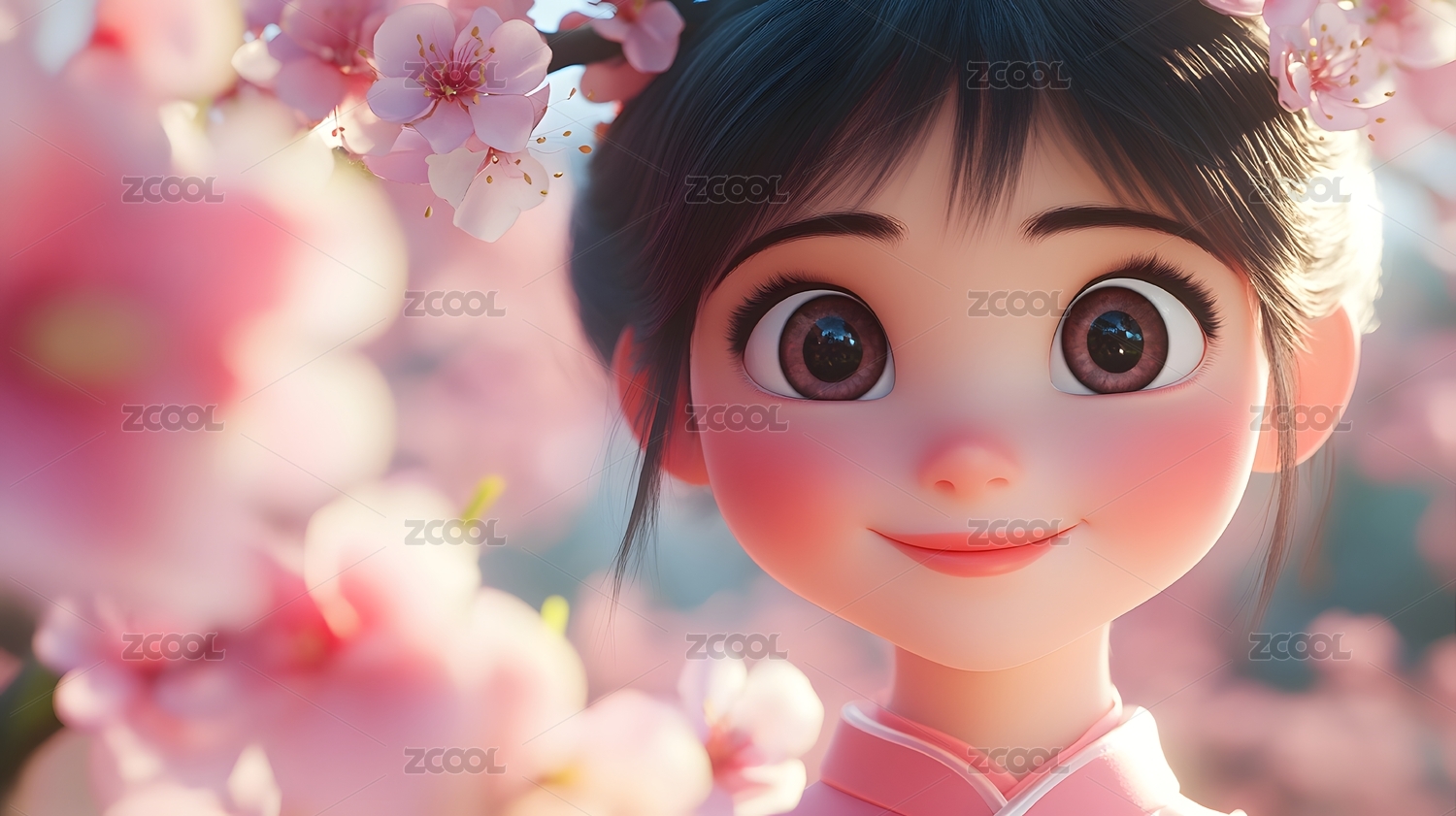 可爱卡通女孩3D渲染图