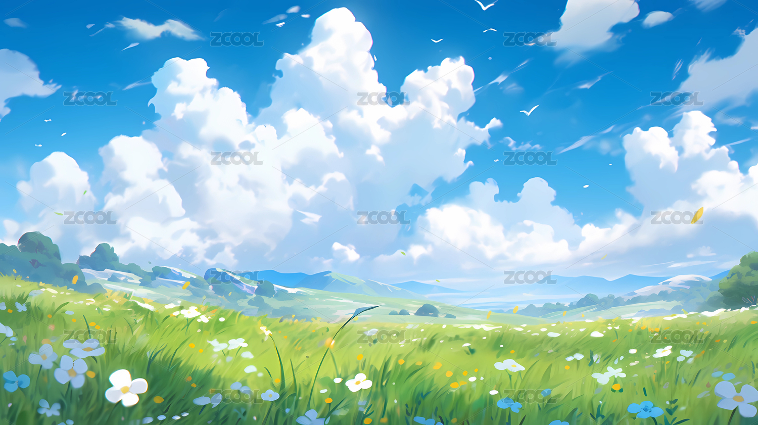阳光,草地,清新,自然,风景,风光,唯美,治愈,卡通,蓝天