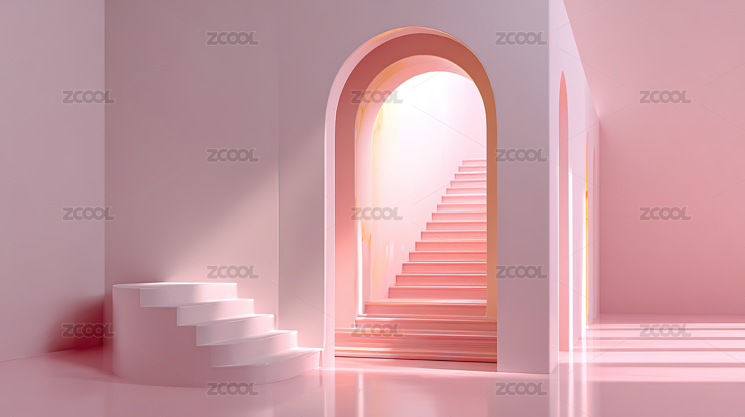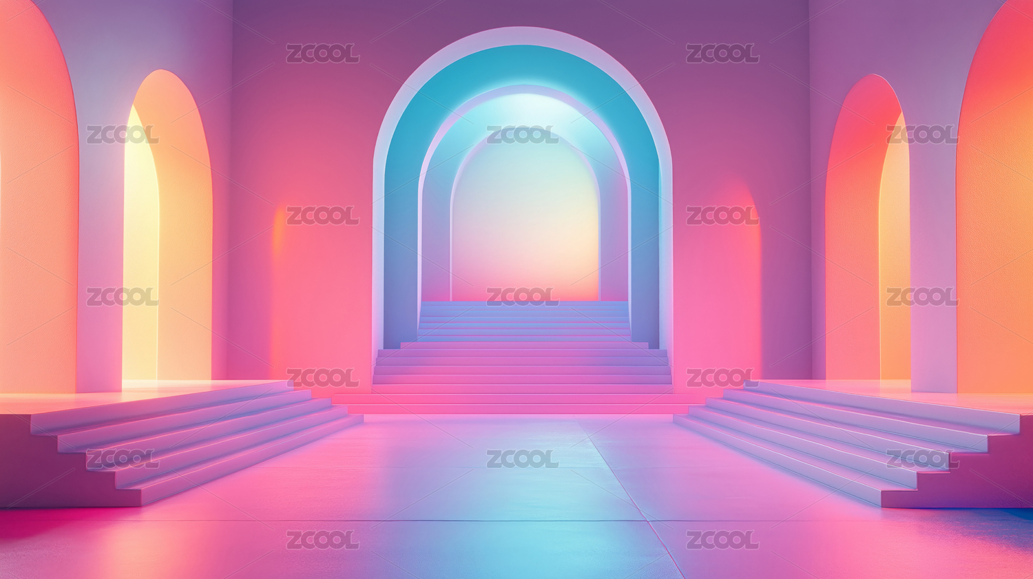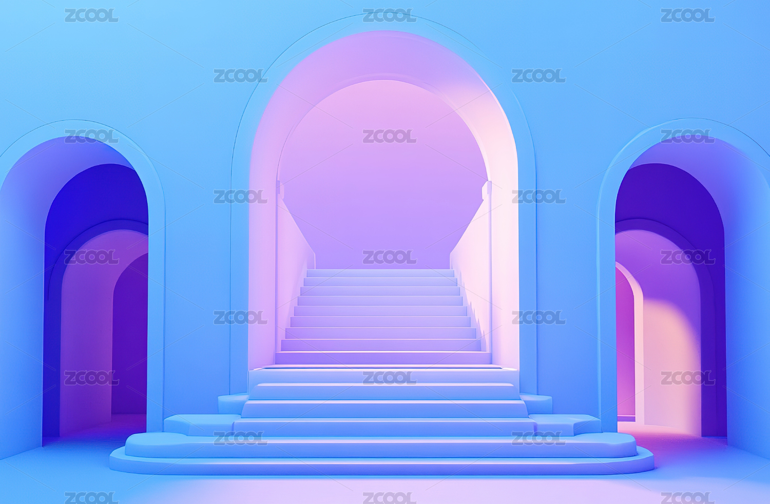 背景,艺术,蓝色,光线,设计,建筑,柔和,粉色,拱门,楼梯