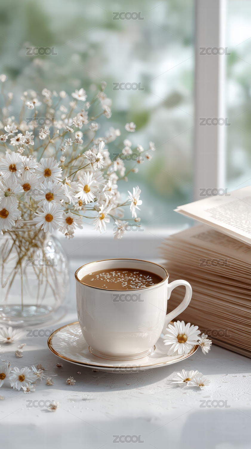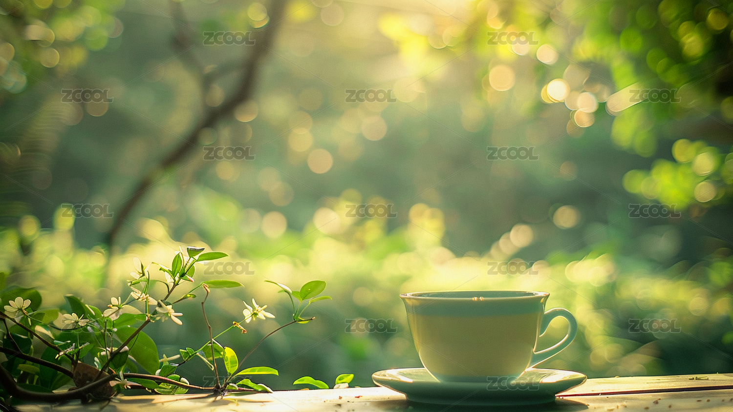 花朵,背景,清新,简约,绿色,白色,宁静,咖啡,饮品,热气