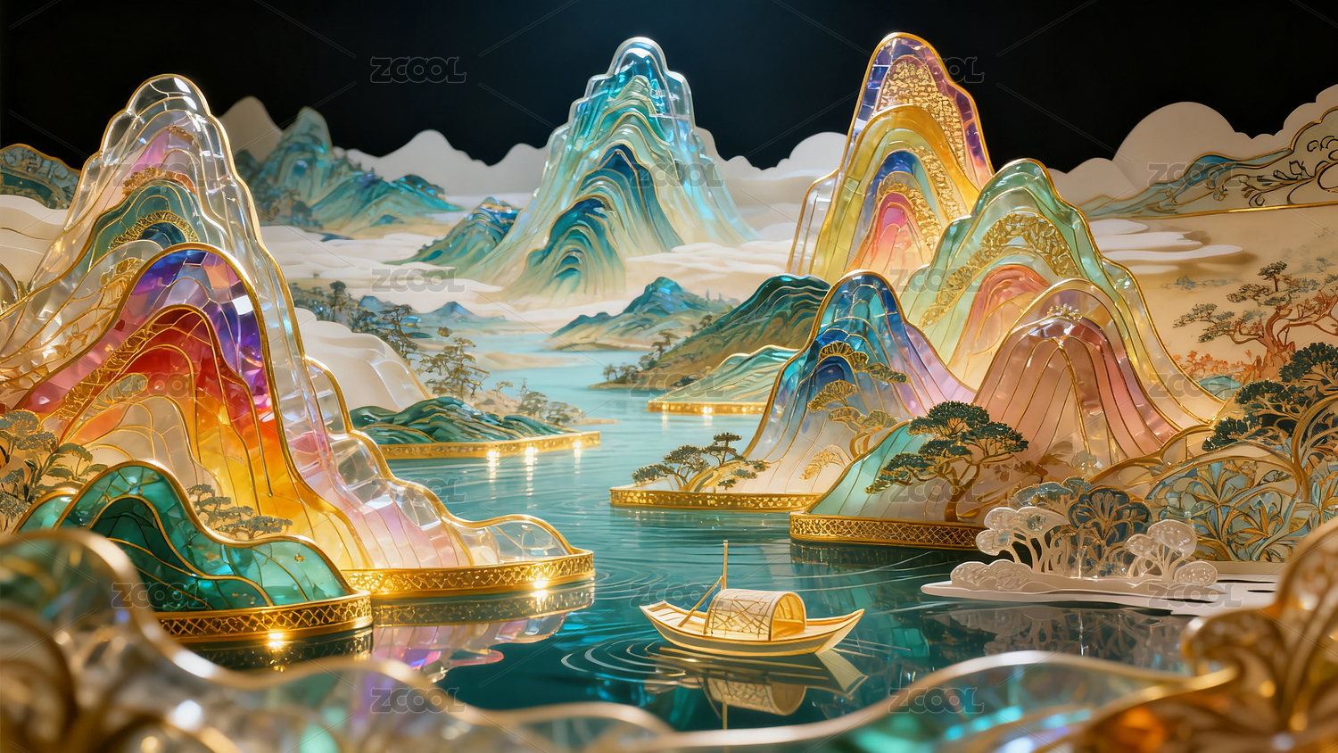 金色山水意境