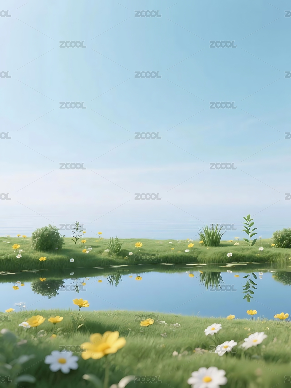 湖面上的草地黄花