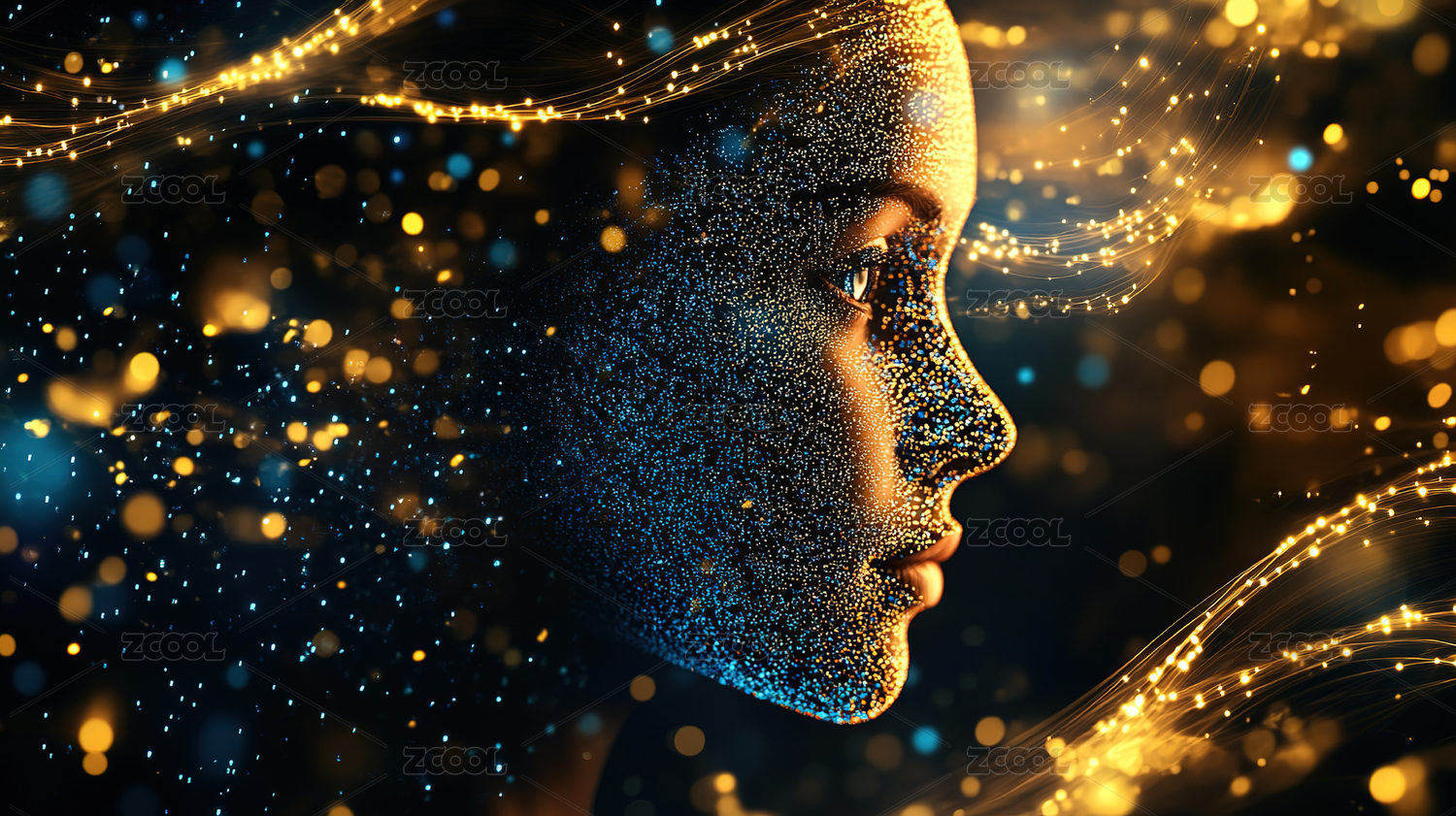 蓝色发光粒子生成人脸抽象虚拟人工智能插画