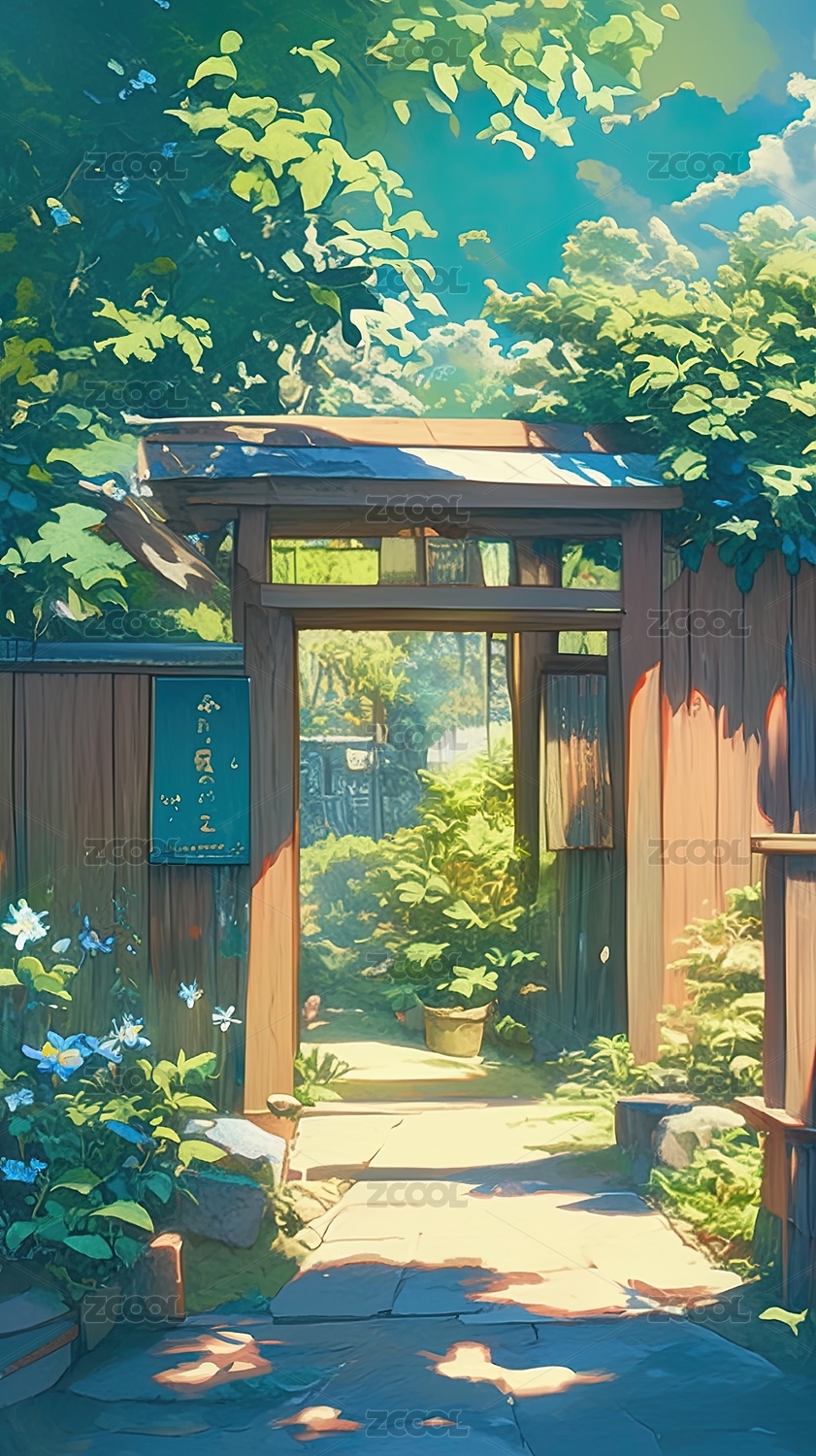 树木,园林,竹林,植物,庭院,建筑,阳光,景观,石拱门,绿色