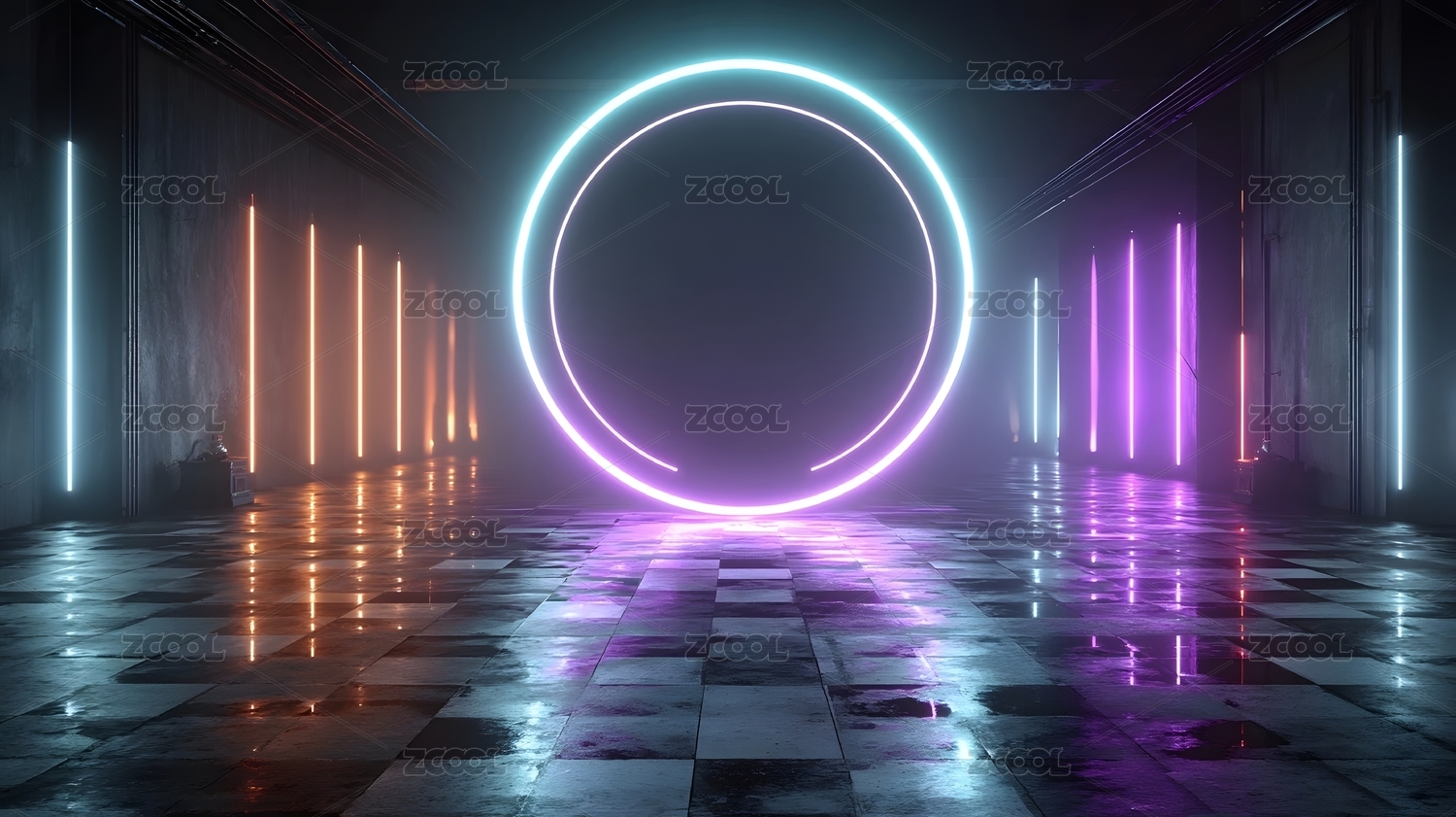 未来感霓虹灯环走廊