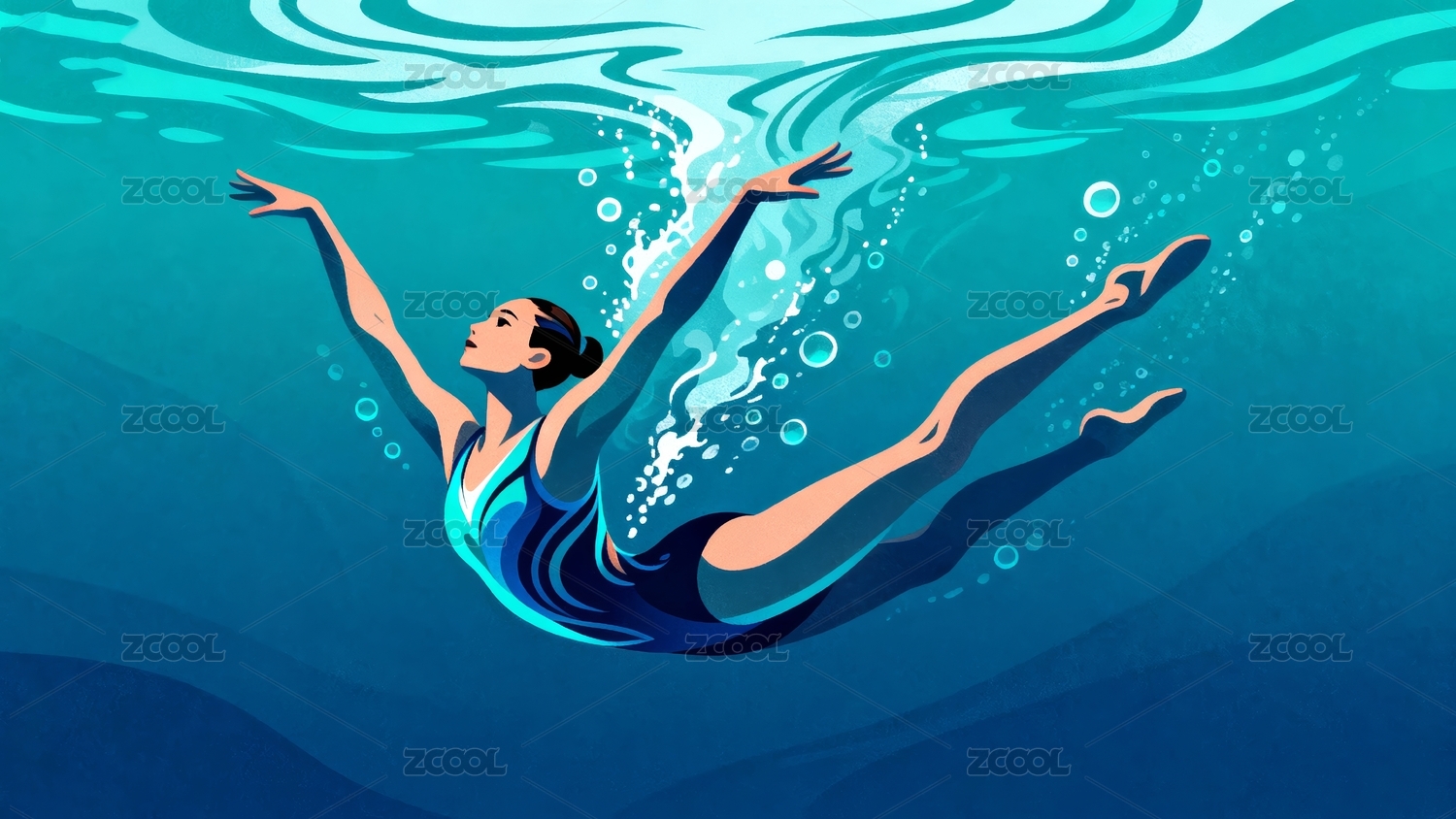 训练,锻炼,拼搏,插画,卡通,女子,跳台,跳水,竞争,活力