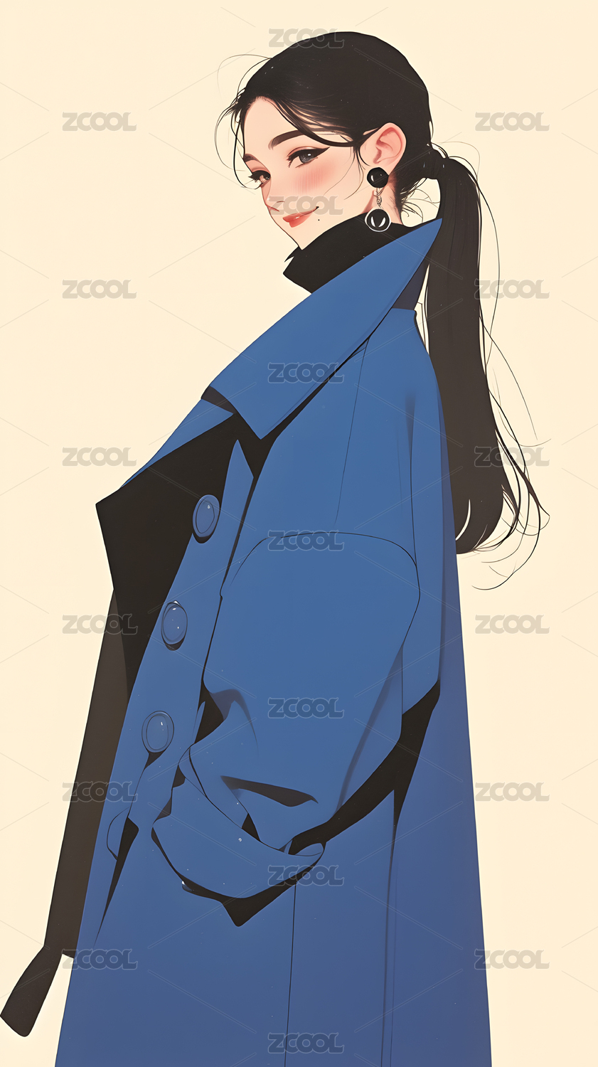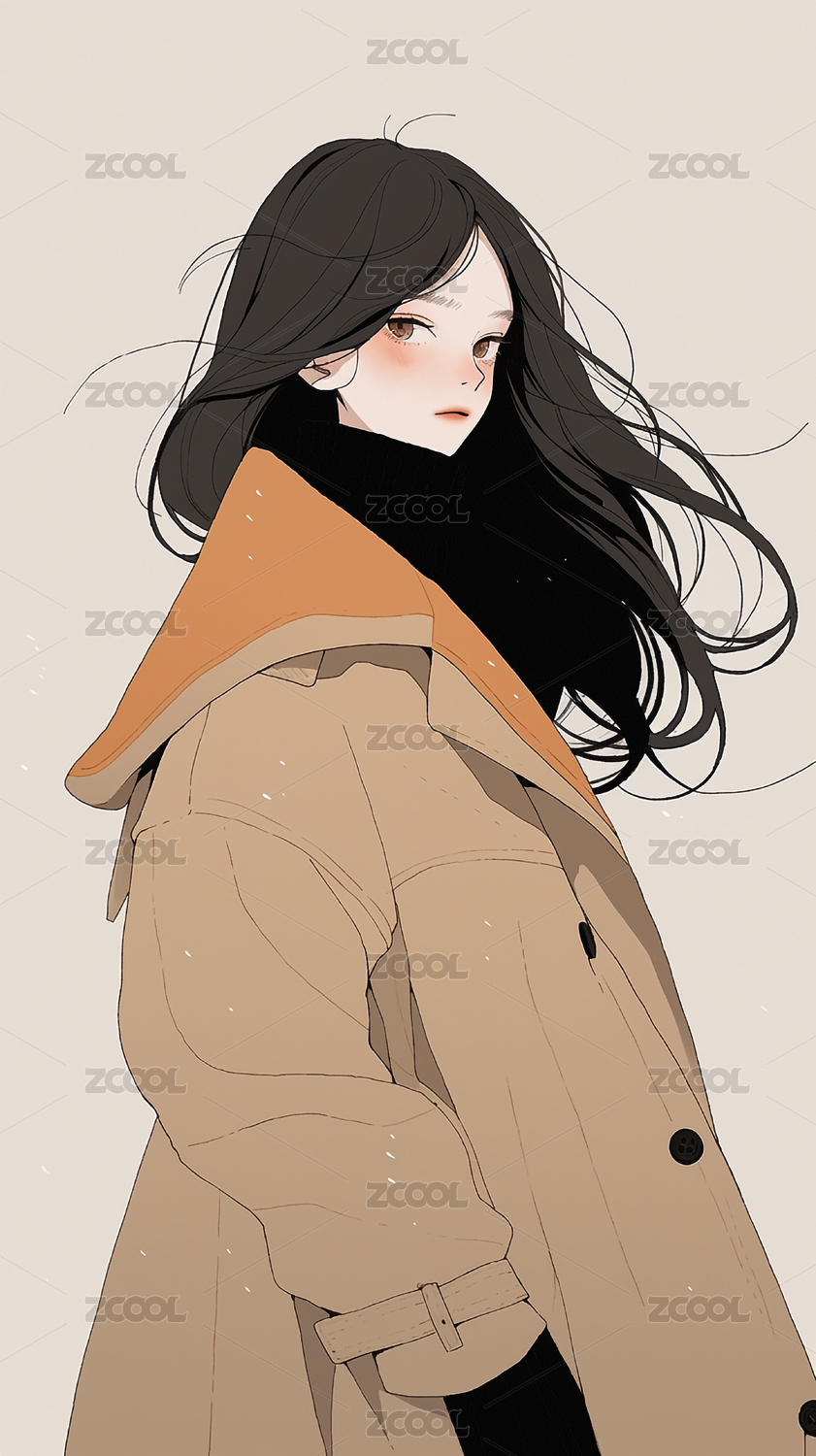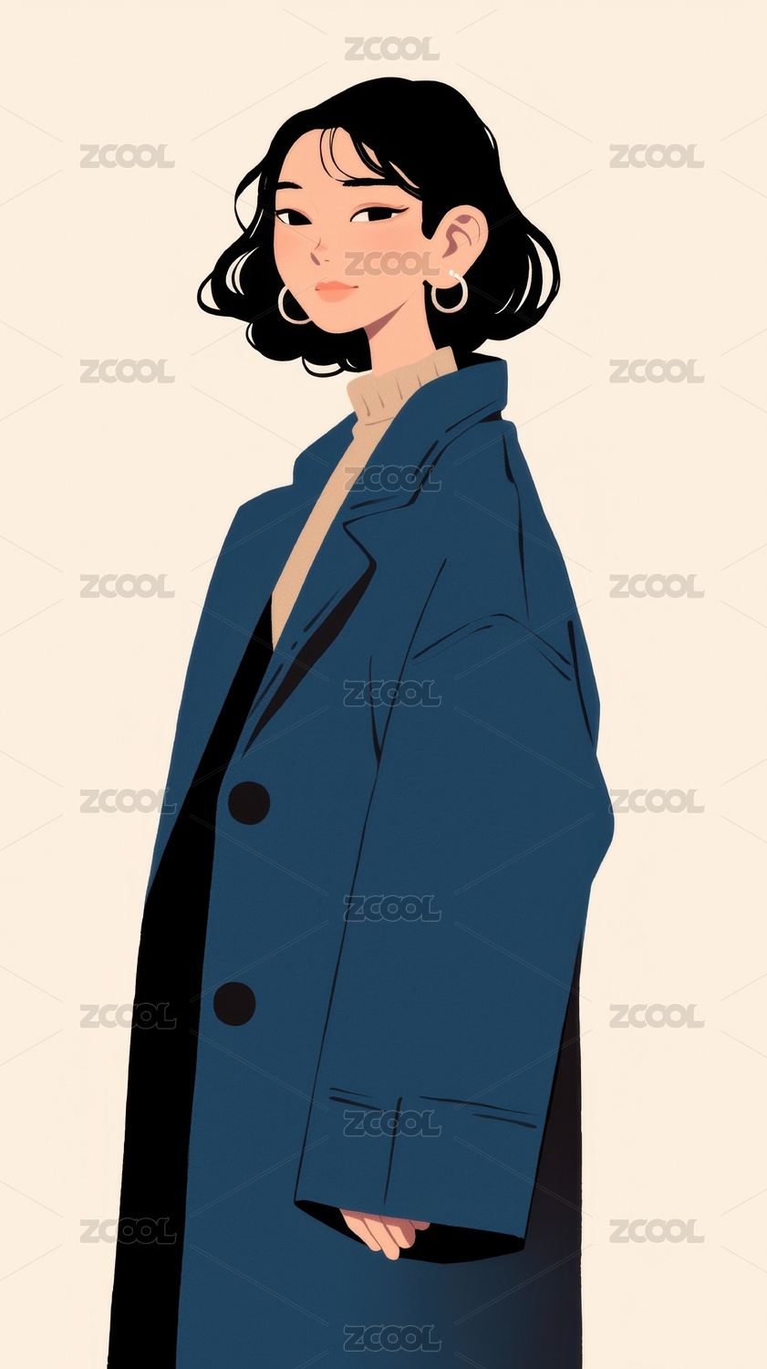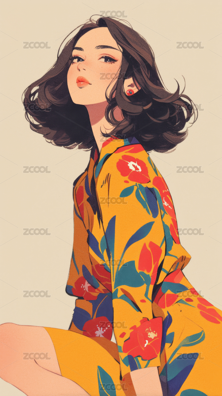 夏天黑头发黄皮肤东方女性头像扁平插画绘画