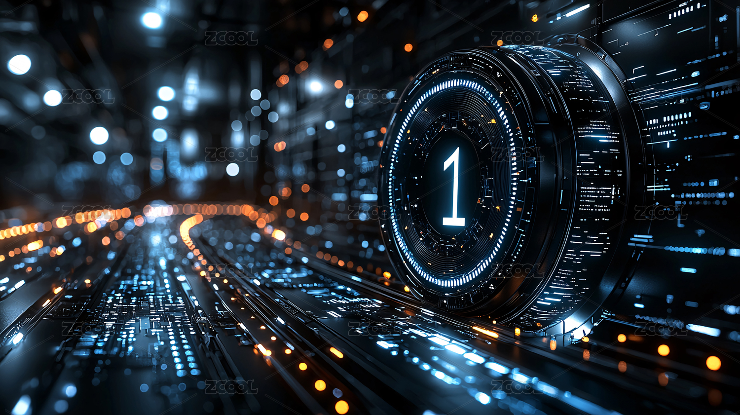 计时器,科技,未来,数字,电路,科技感,炫酷,蓝色,橙色,光线
