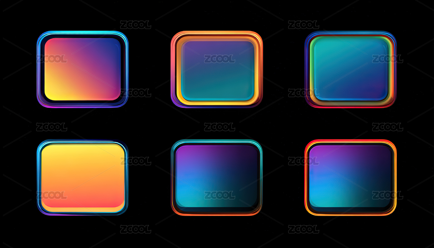 彩色, 堆叠, 方形, 图标, 设计, UI, UX, 渐变, 层次, 按钮