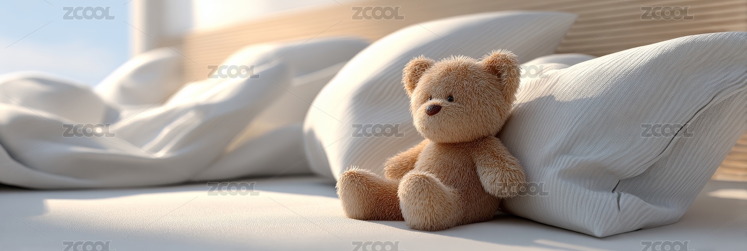 泰迪熊坐在床上