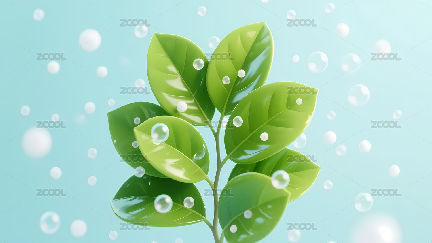夏天治愈绿色嫩芽叶子上的露珠水珠