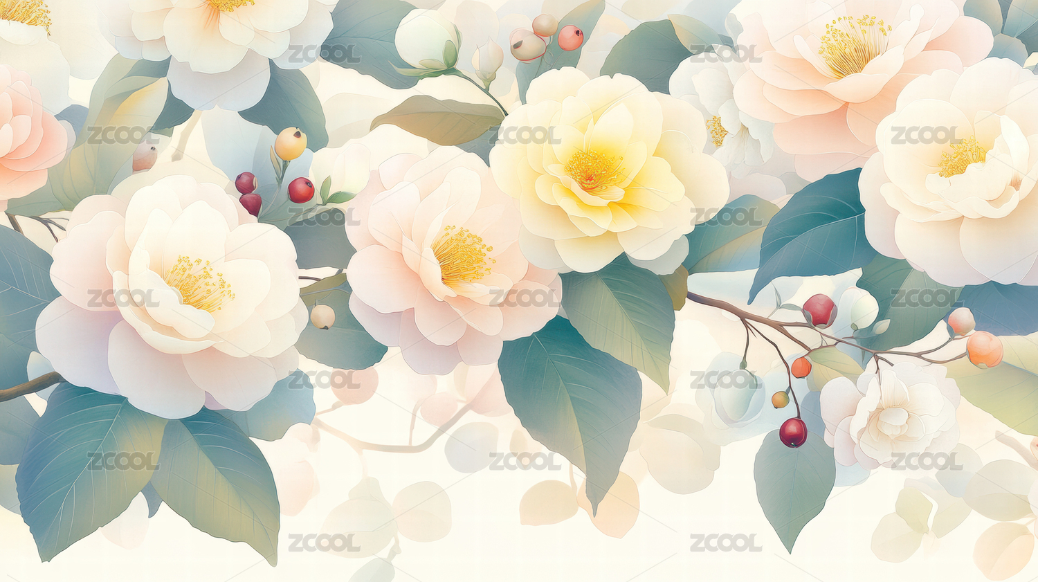 花朵,柔和,艺术,花卉,美丽,背景,自然,绘画,春天,插画