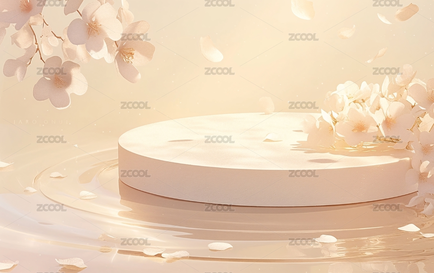 平台,白色,落花,粉色,水面,倒影,墙面,光影,阴影,枝条