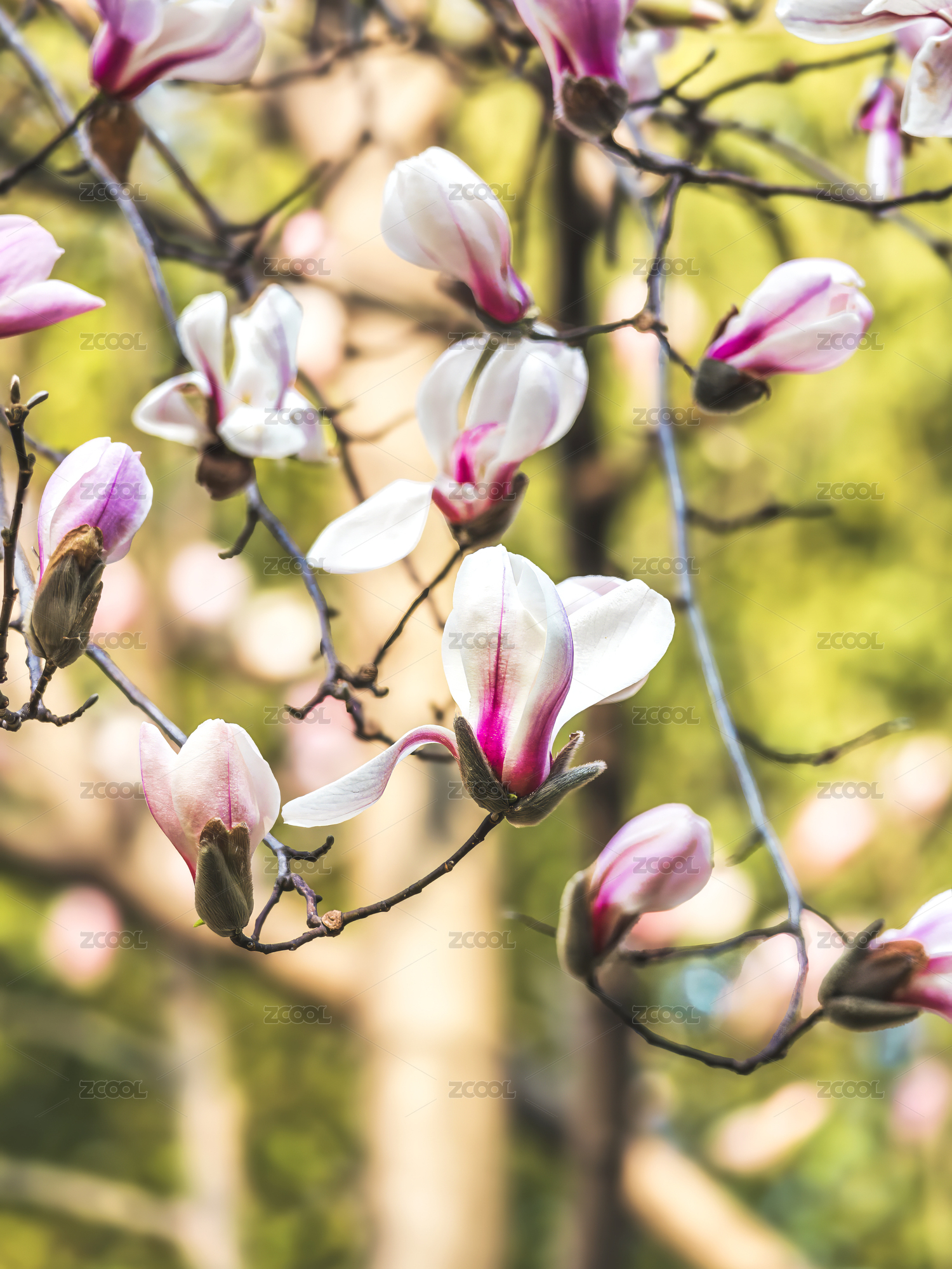 玉兰花,花朵,春天,绽放,花瓣,枝条,粉色,白色,优雅,清新