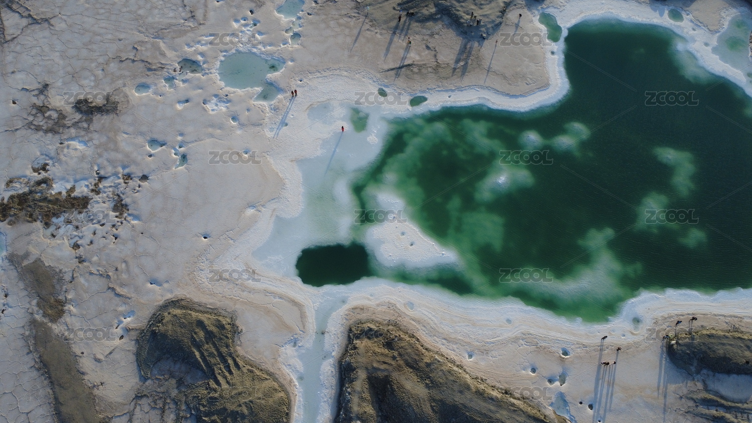 中国青海大柴旦翡翠湖景区盐湖自然风光航拍