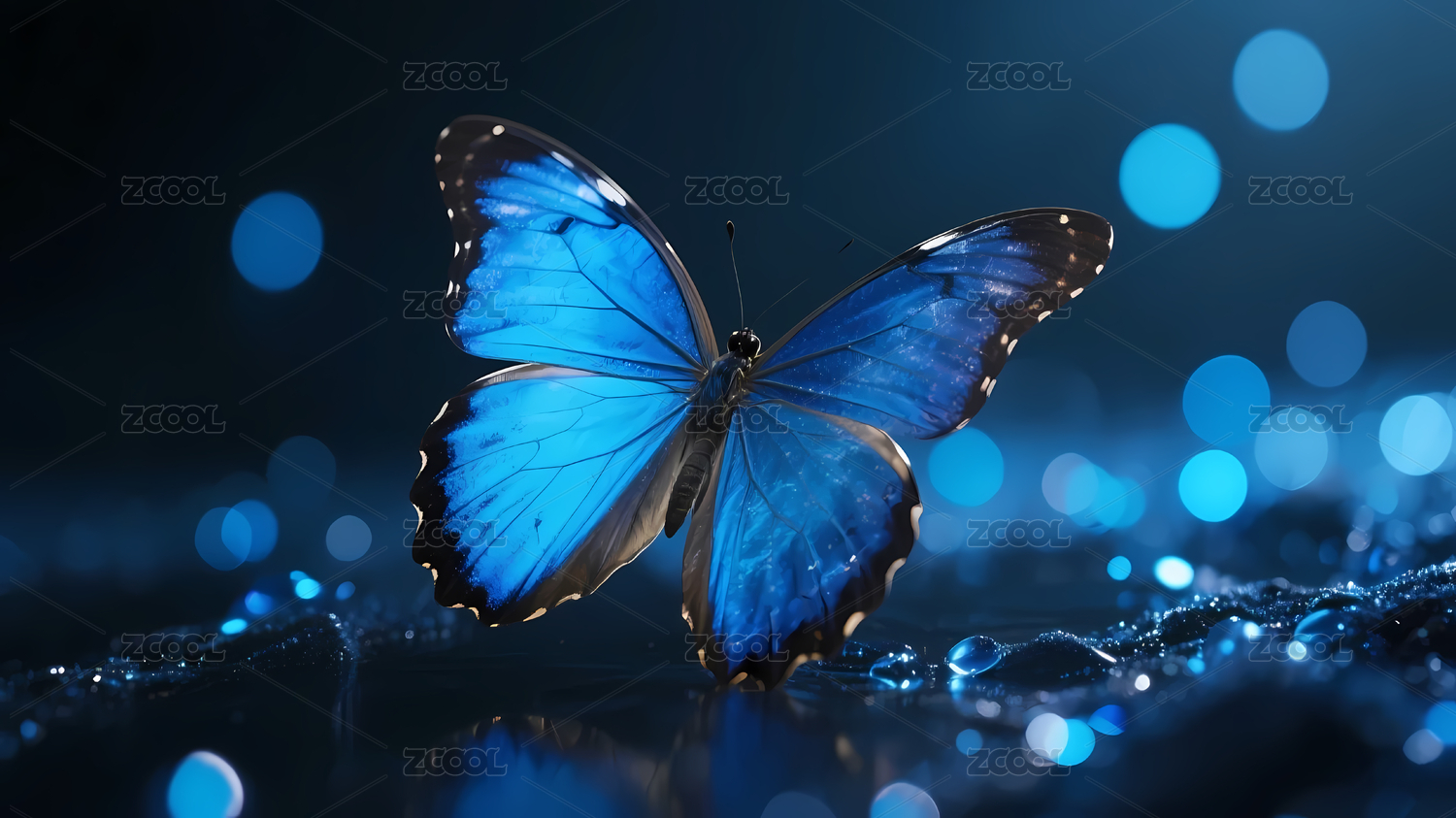 唯美蓝色透明水晶蝴蝶翅膀特写