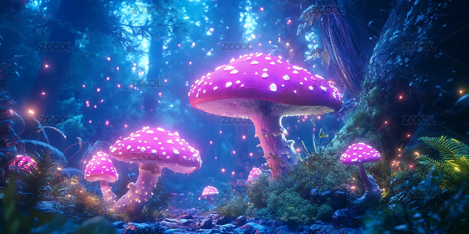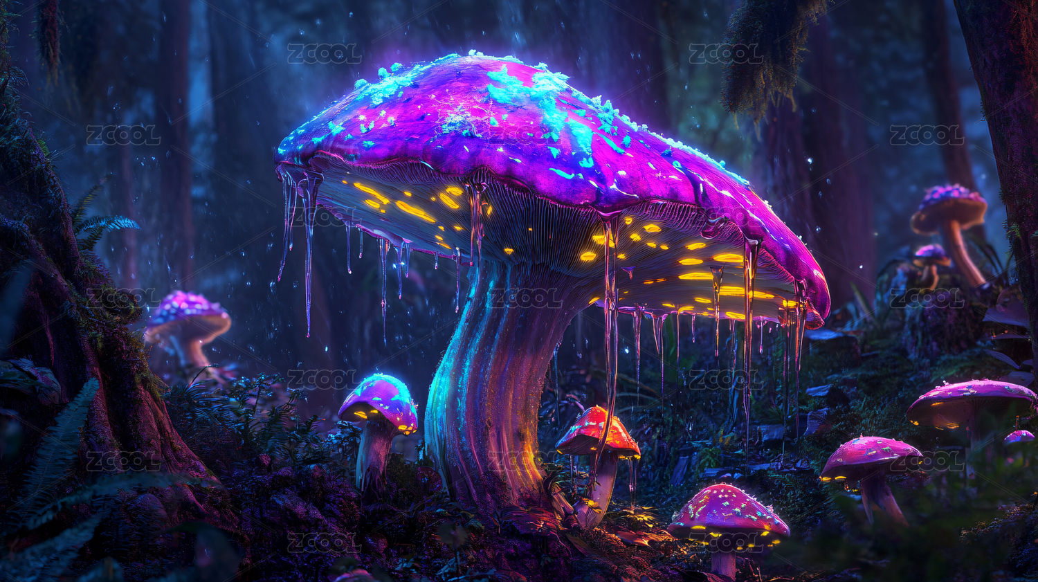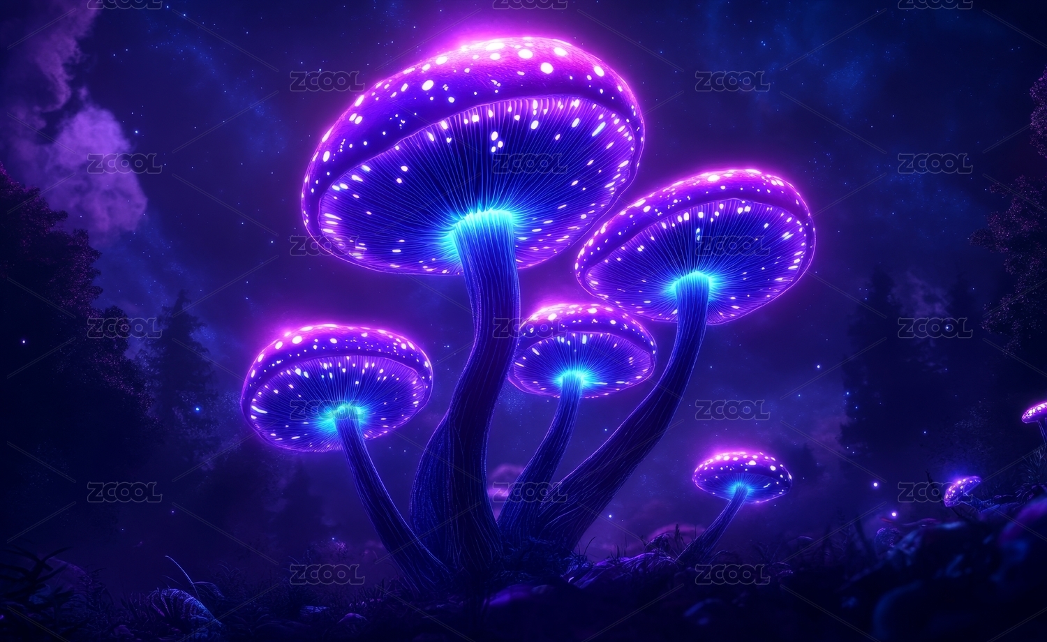赛博朋克蘑菇梦幻夜晚发光未来科技科幻虚构