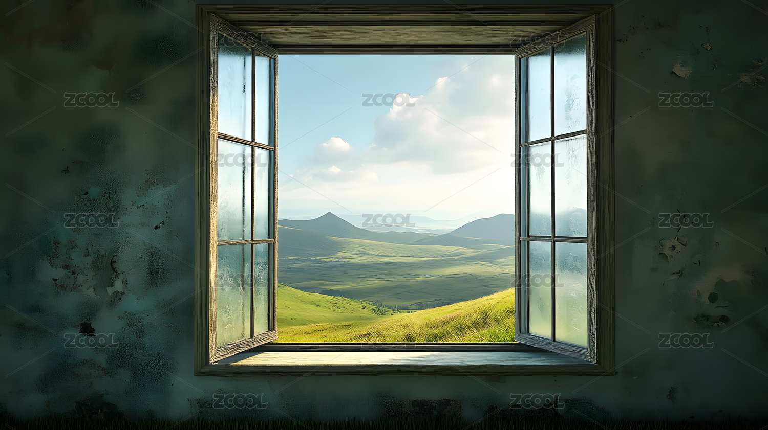 破旧墙壁乡村风景窗景