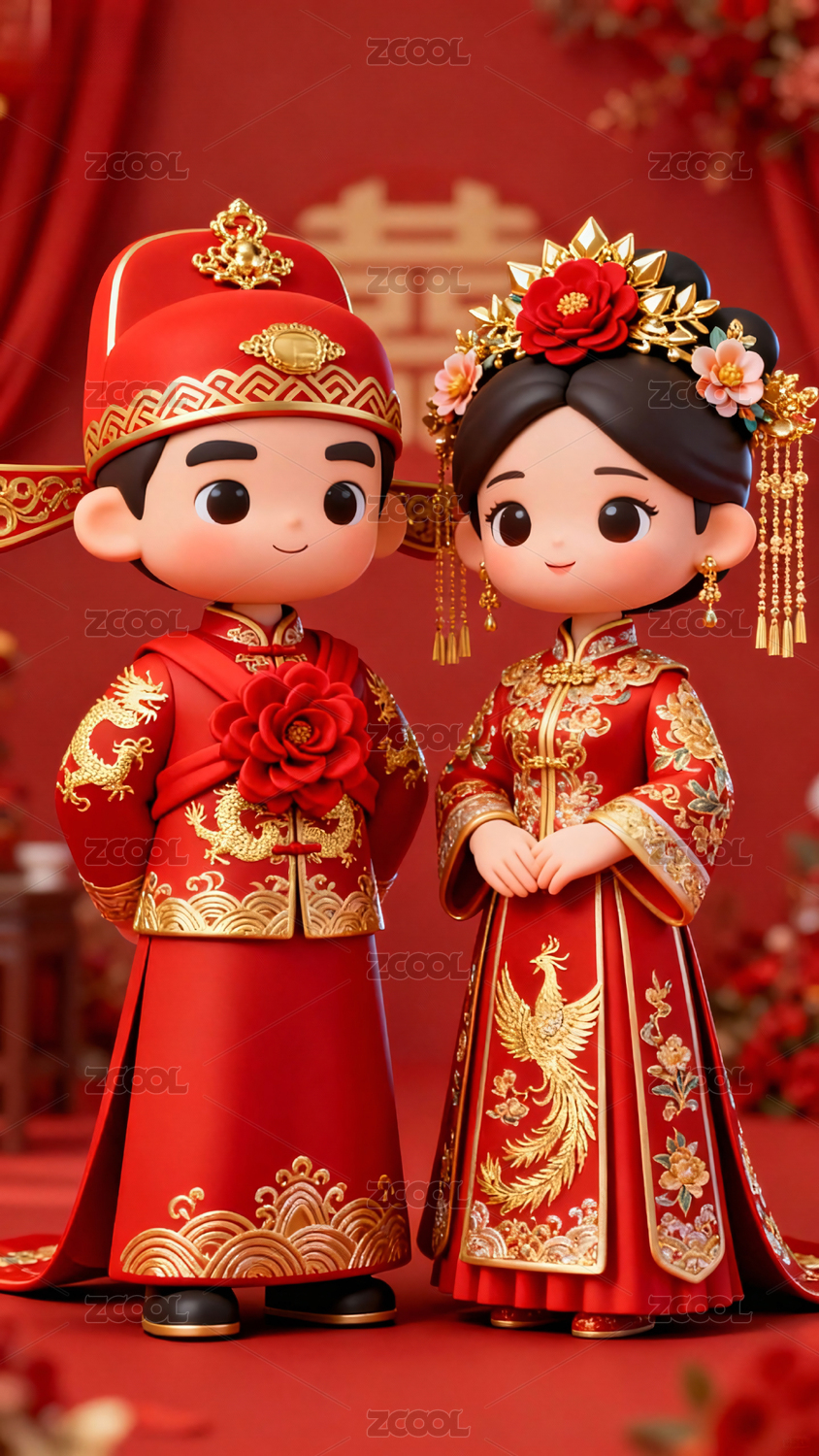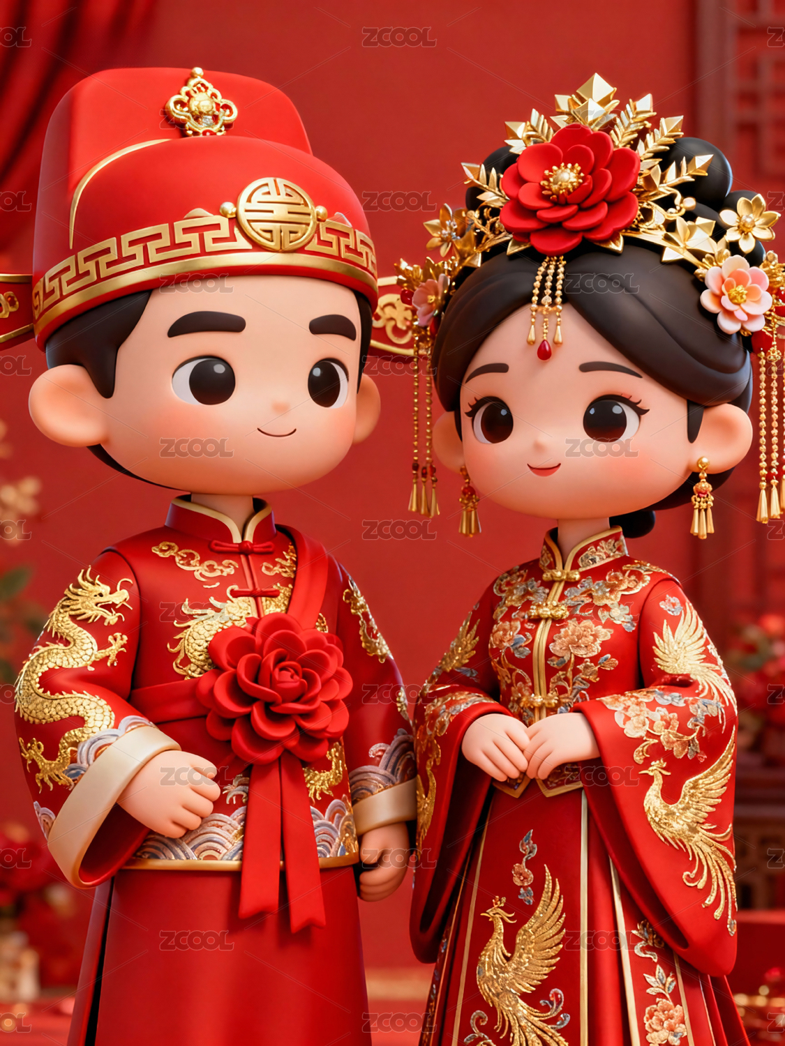 3d卡通中式婚礼Q版新人