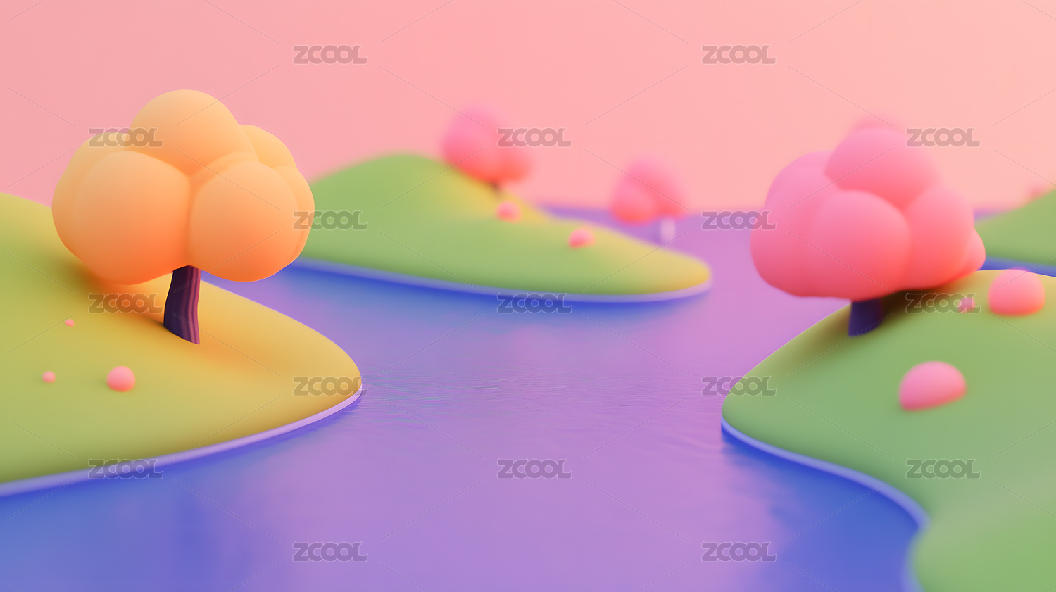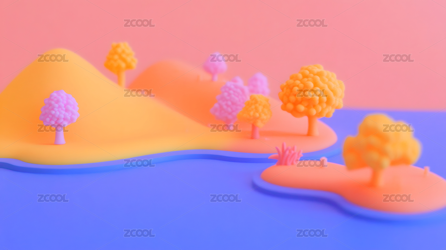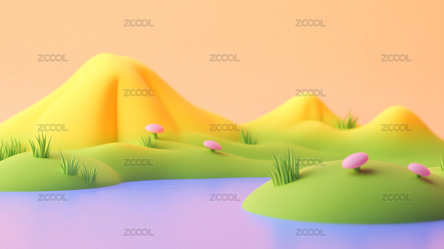 3d,立体,可爱,卡通,温柔,柔和,彩色,风景,山峰,景观