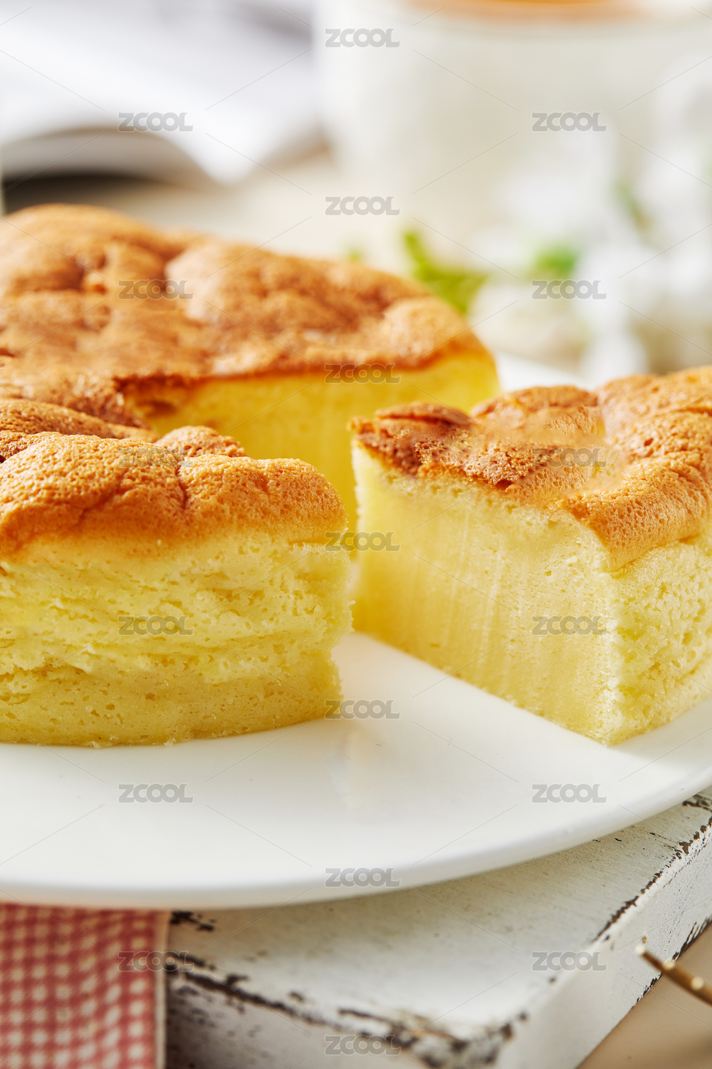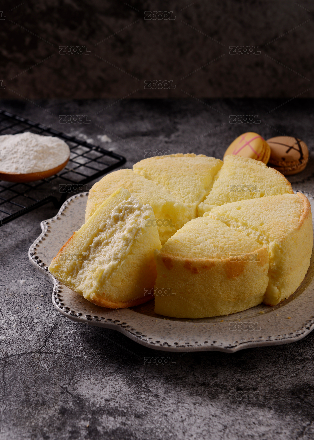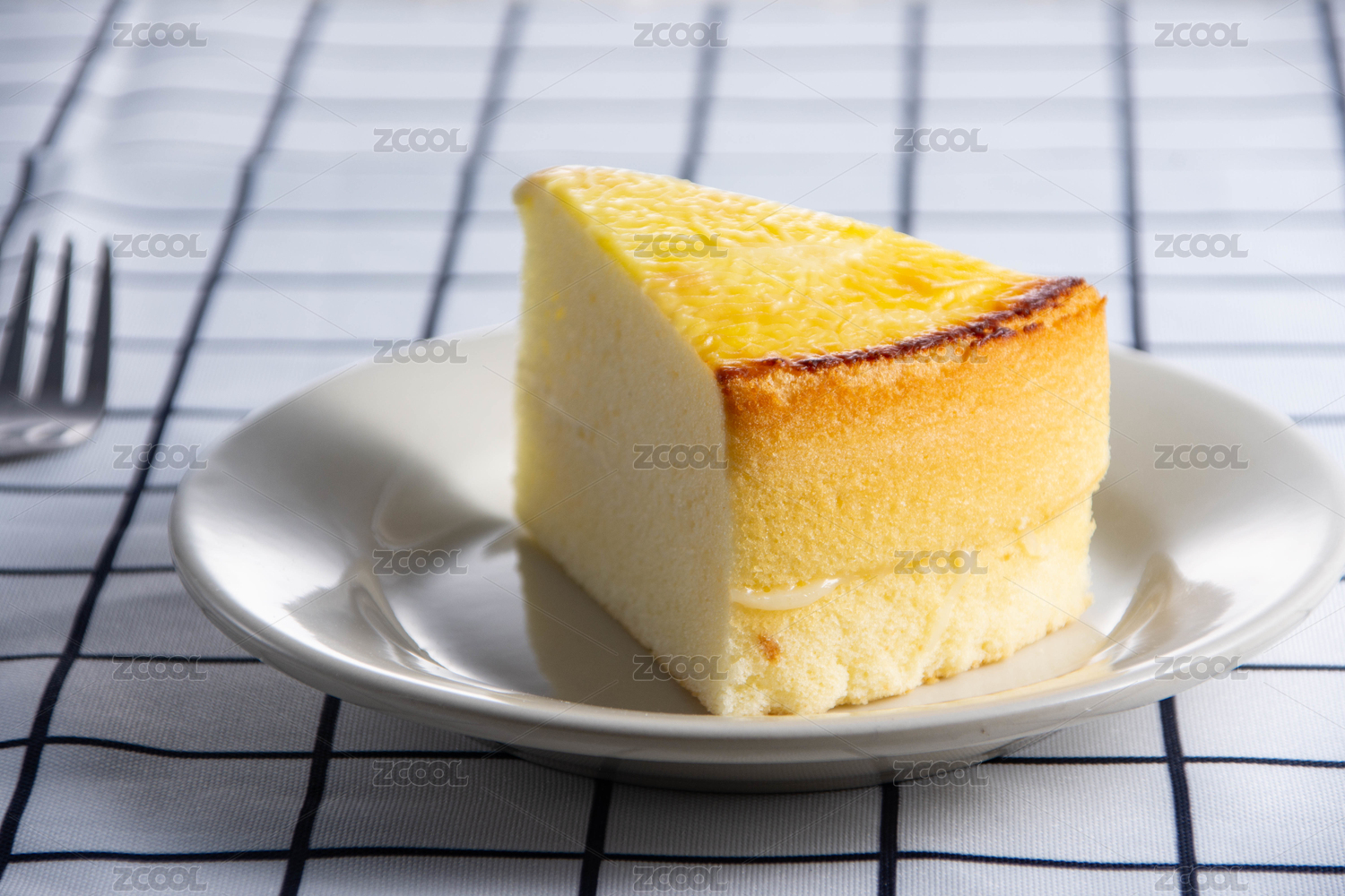 一盘鲜牛乳蛋糕卷摆放在桌面上特写