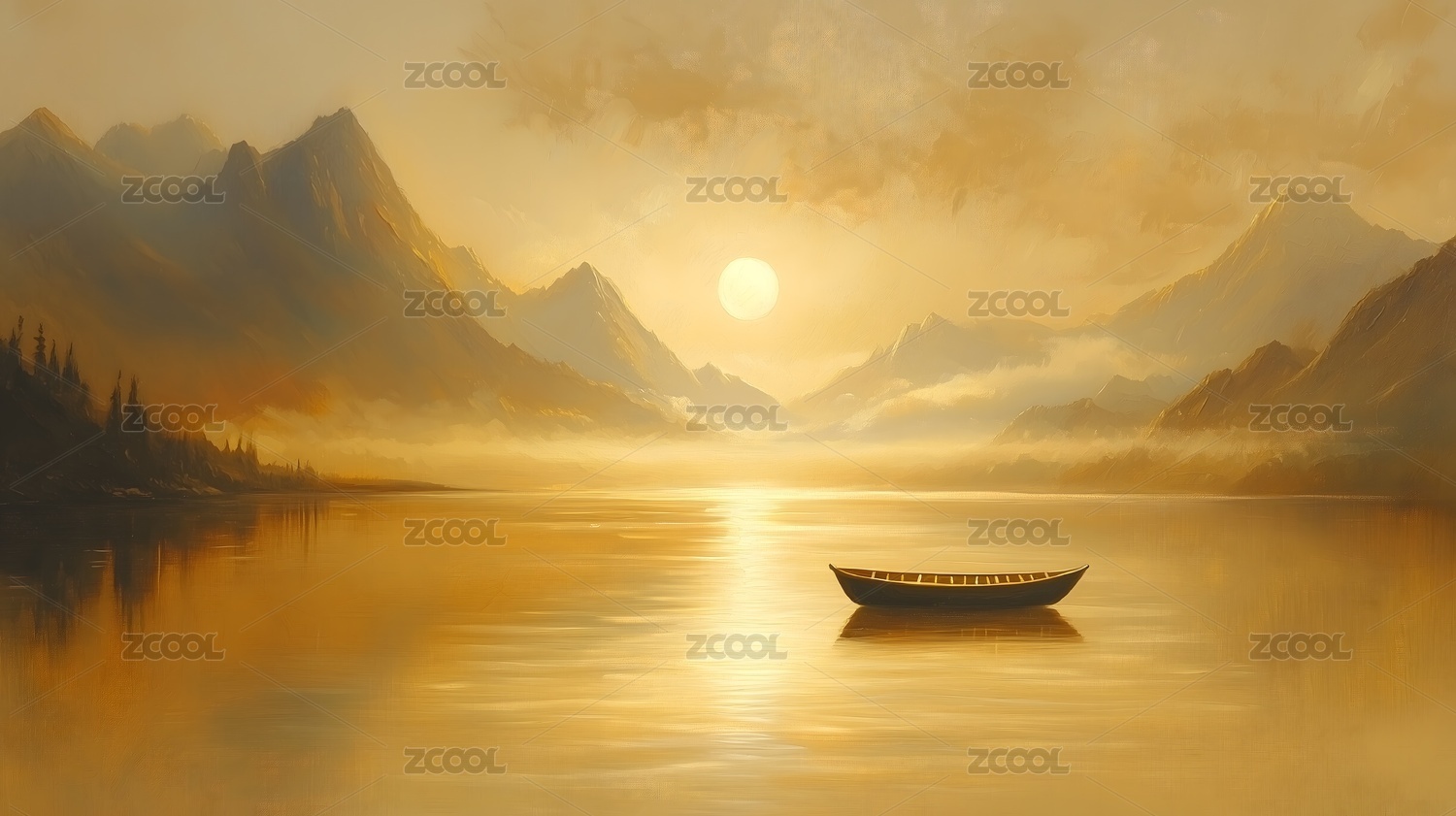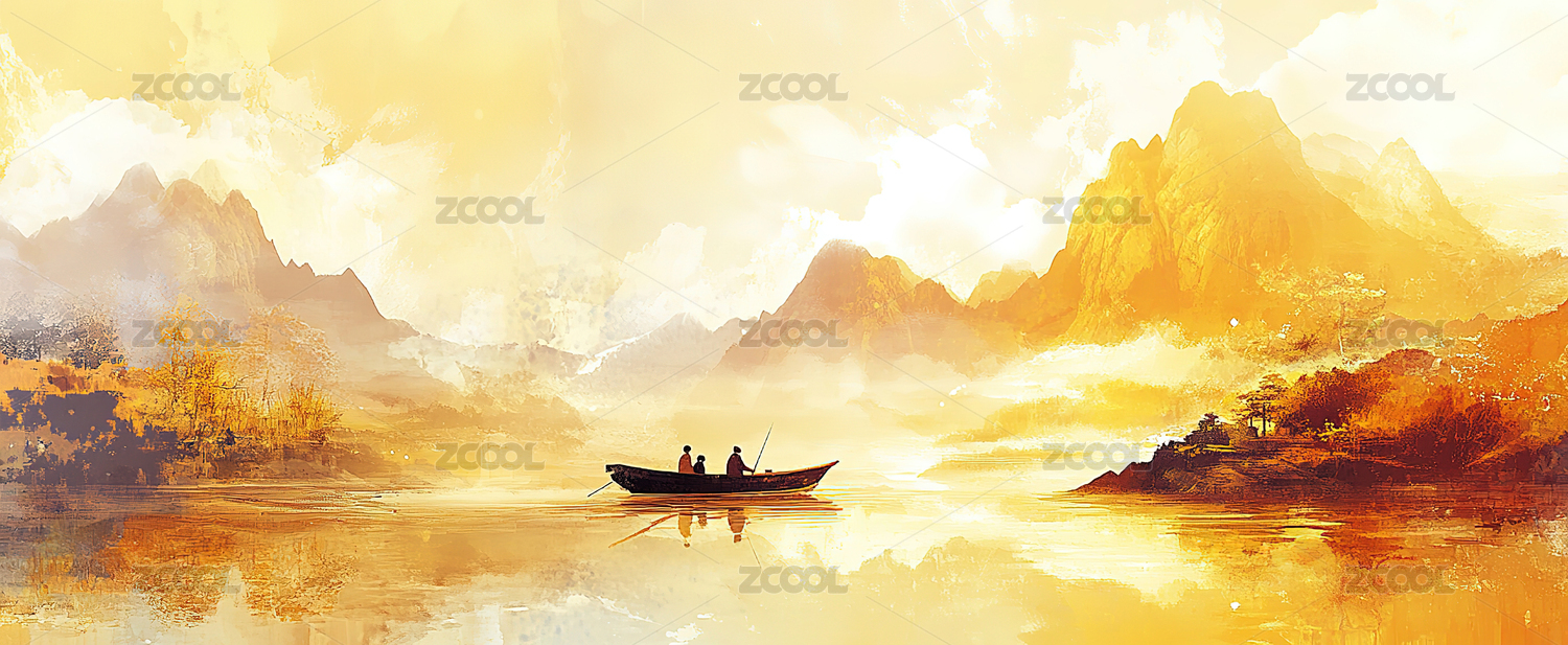 金色山湖静谧之舟