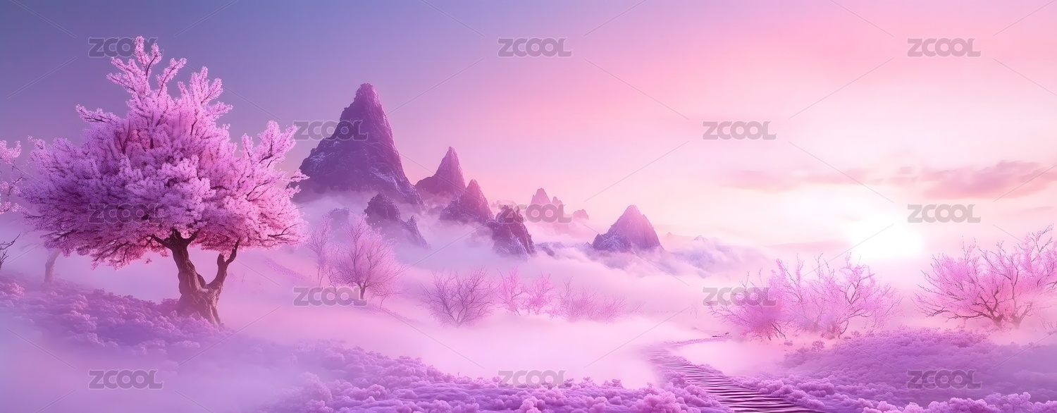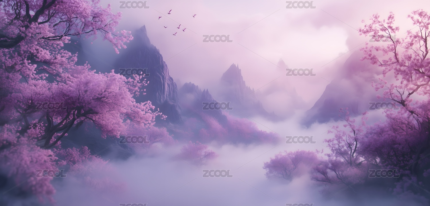 树木,景色,山峦,自然,风景,梦幻,天空,紫雾,仙境,云海