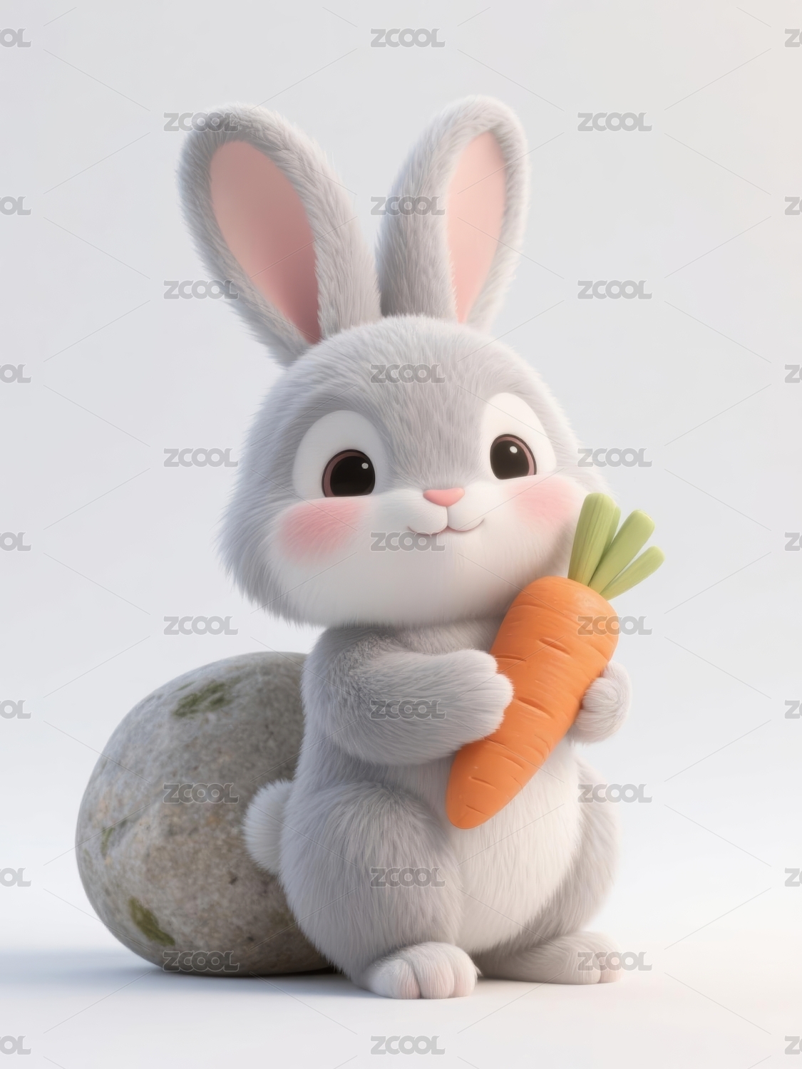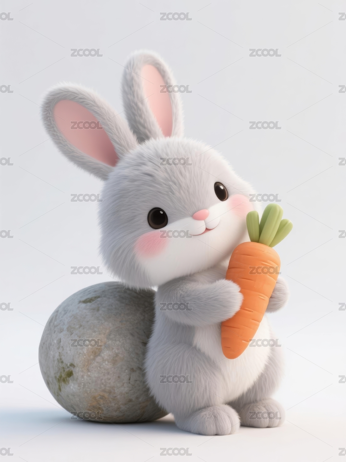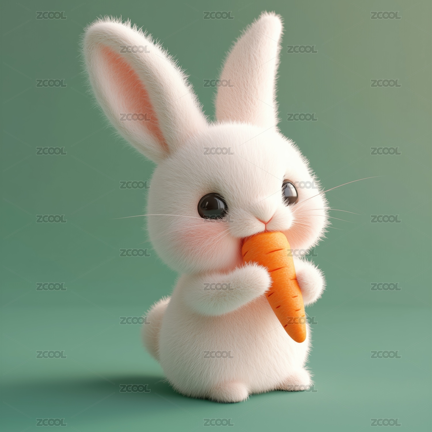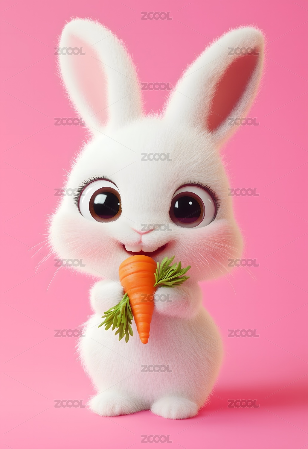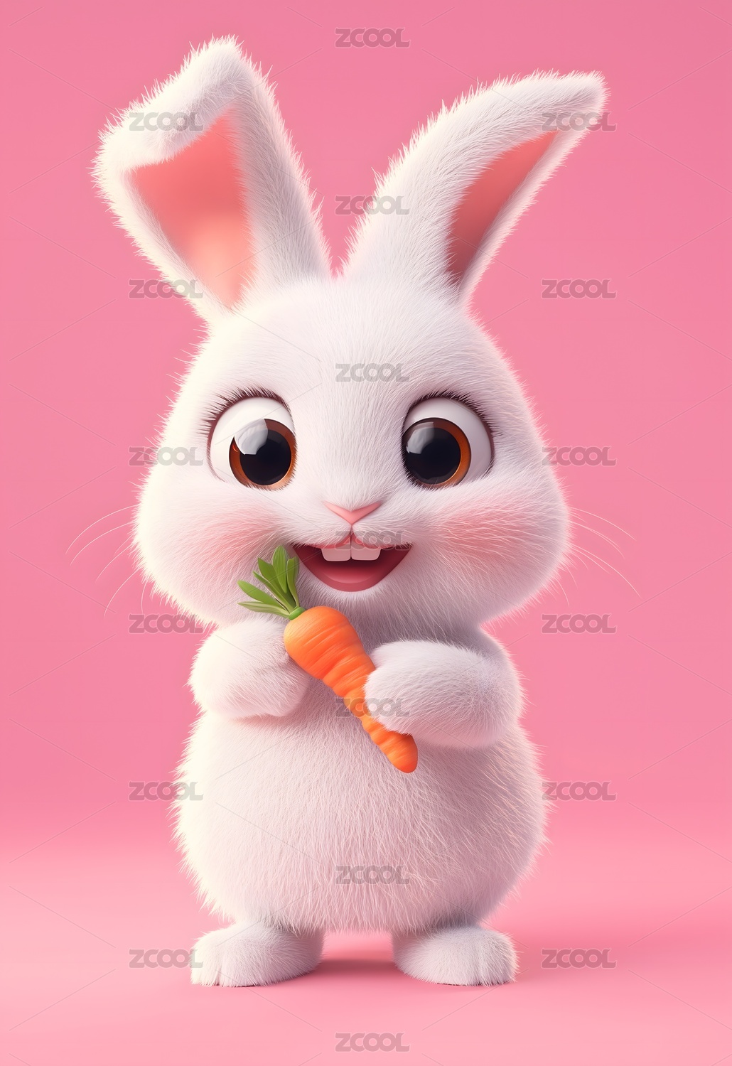 纯色背景一只可爱兔子的肖像插画3D渲染