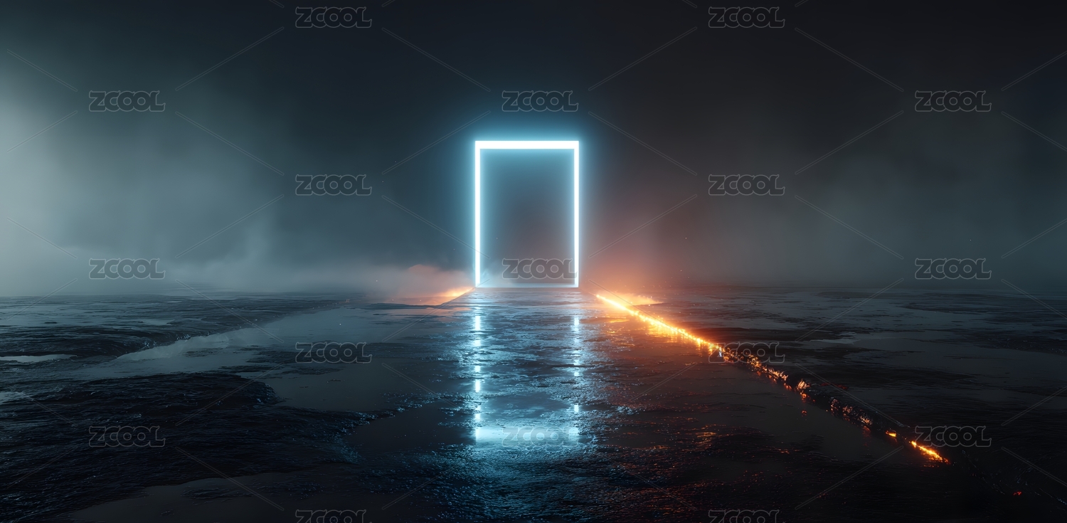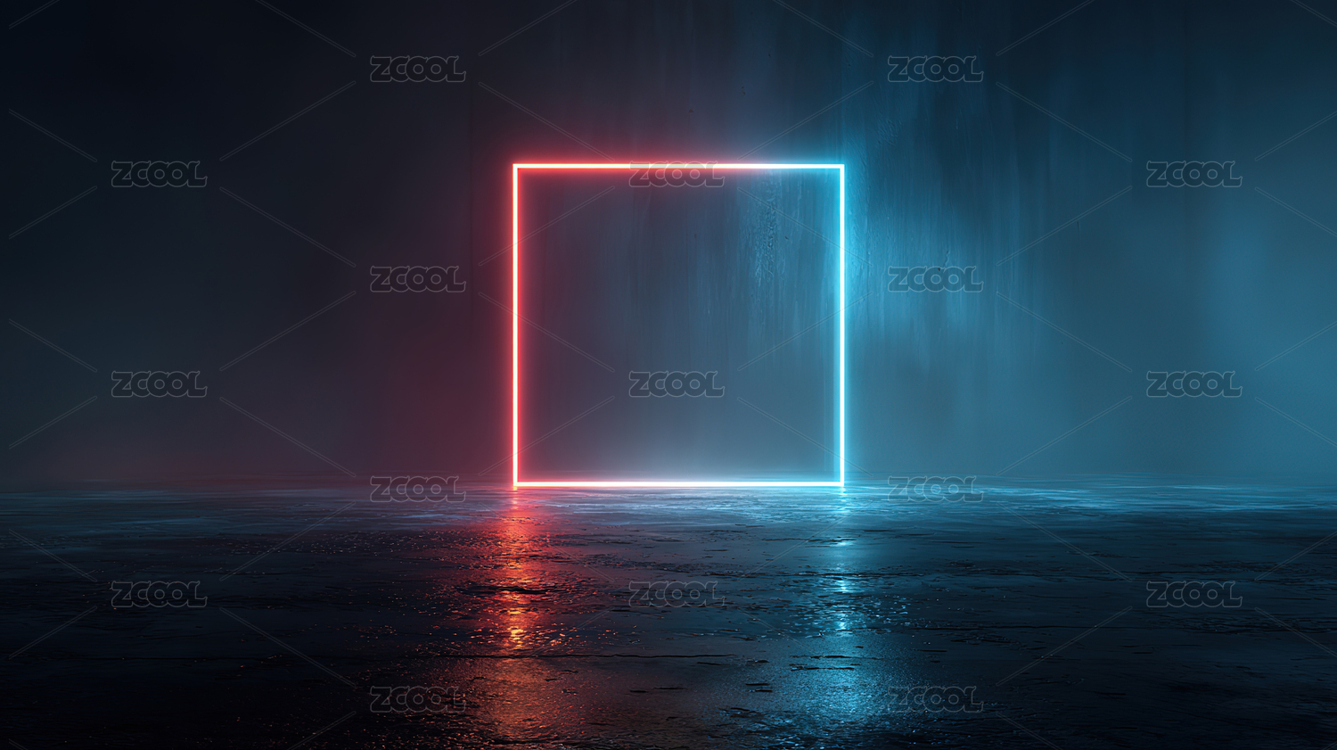 霓虹方框与云雾交织 梦幻迷离光影氛围