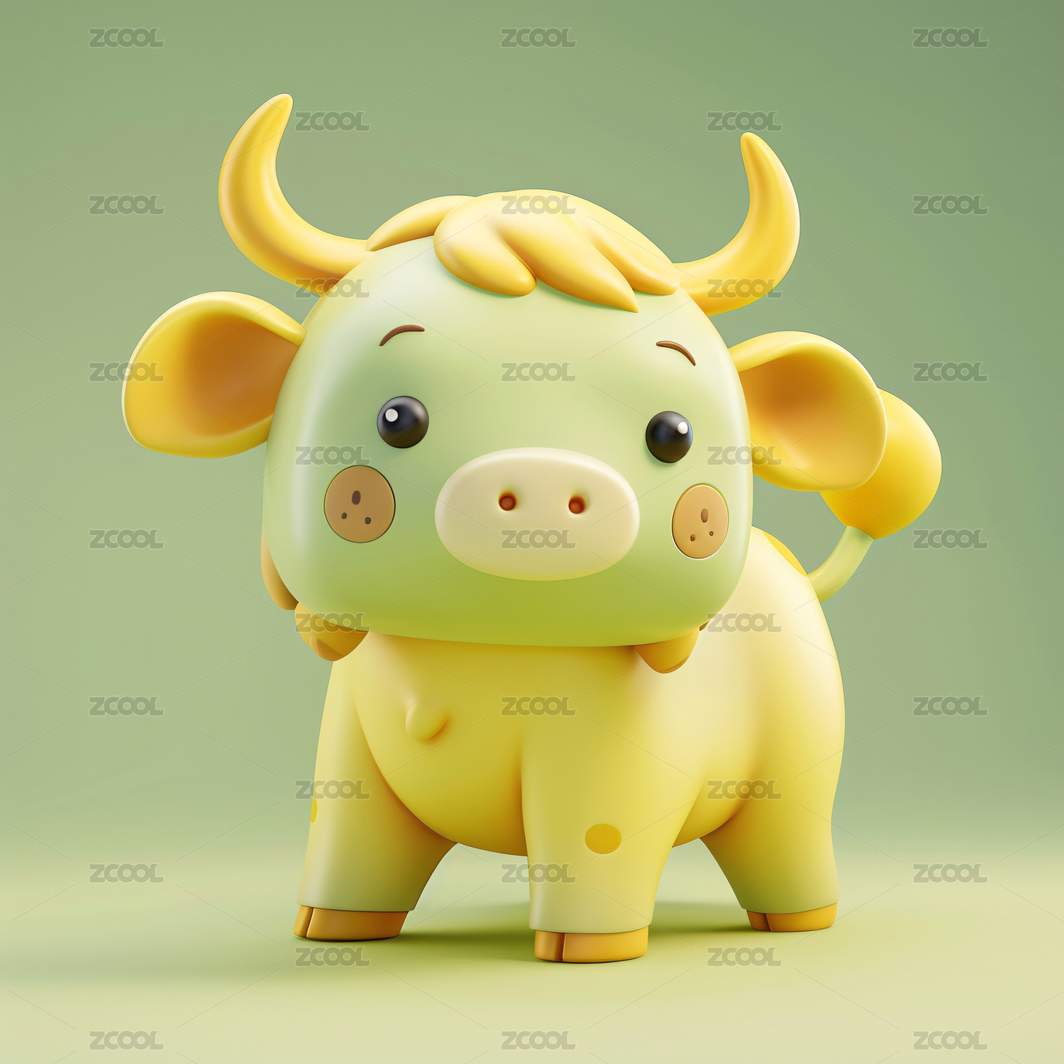 3d渲染可爱牛年卡通牛IP的3D设计