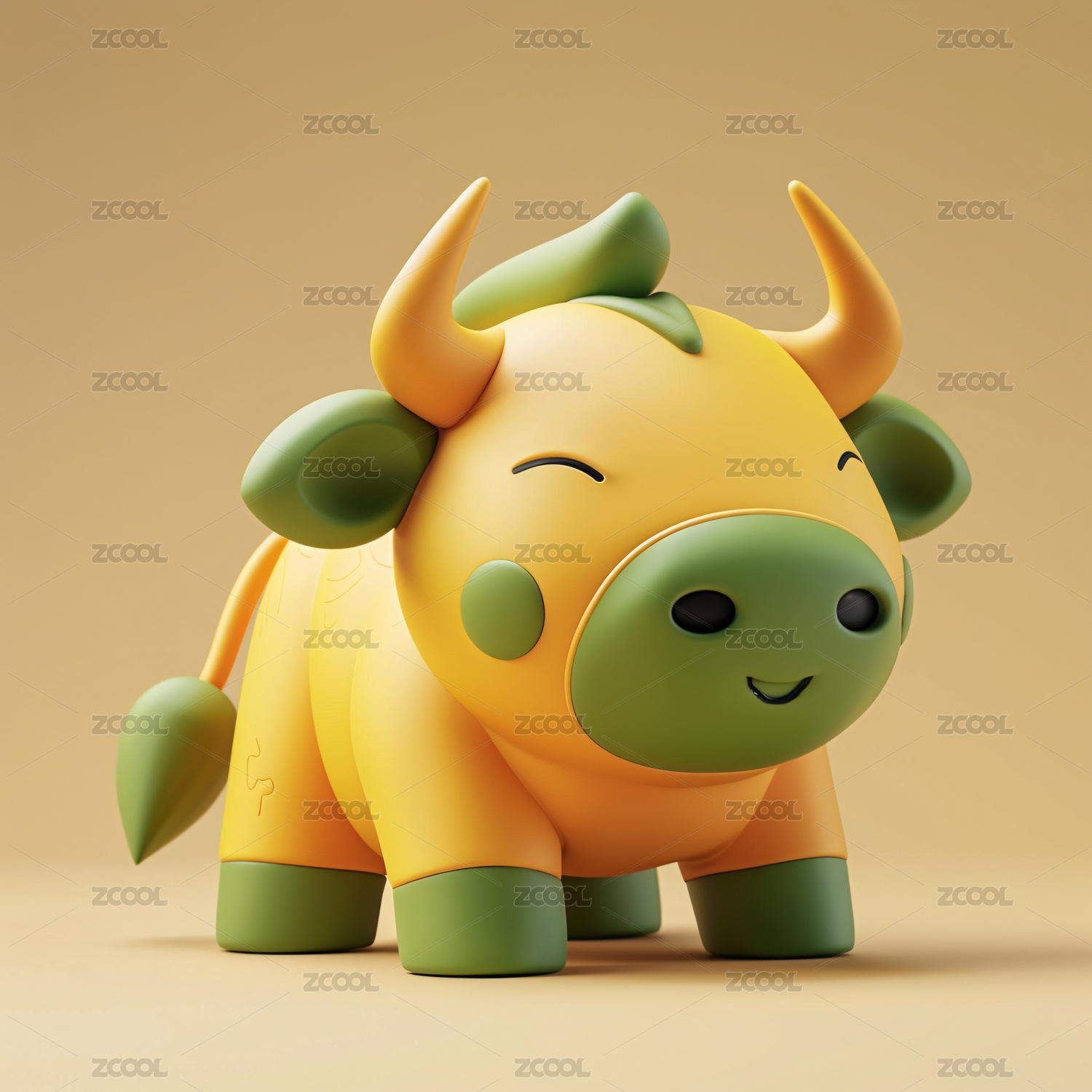 一只黄色的卡通生肖牛