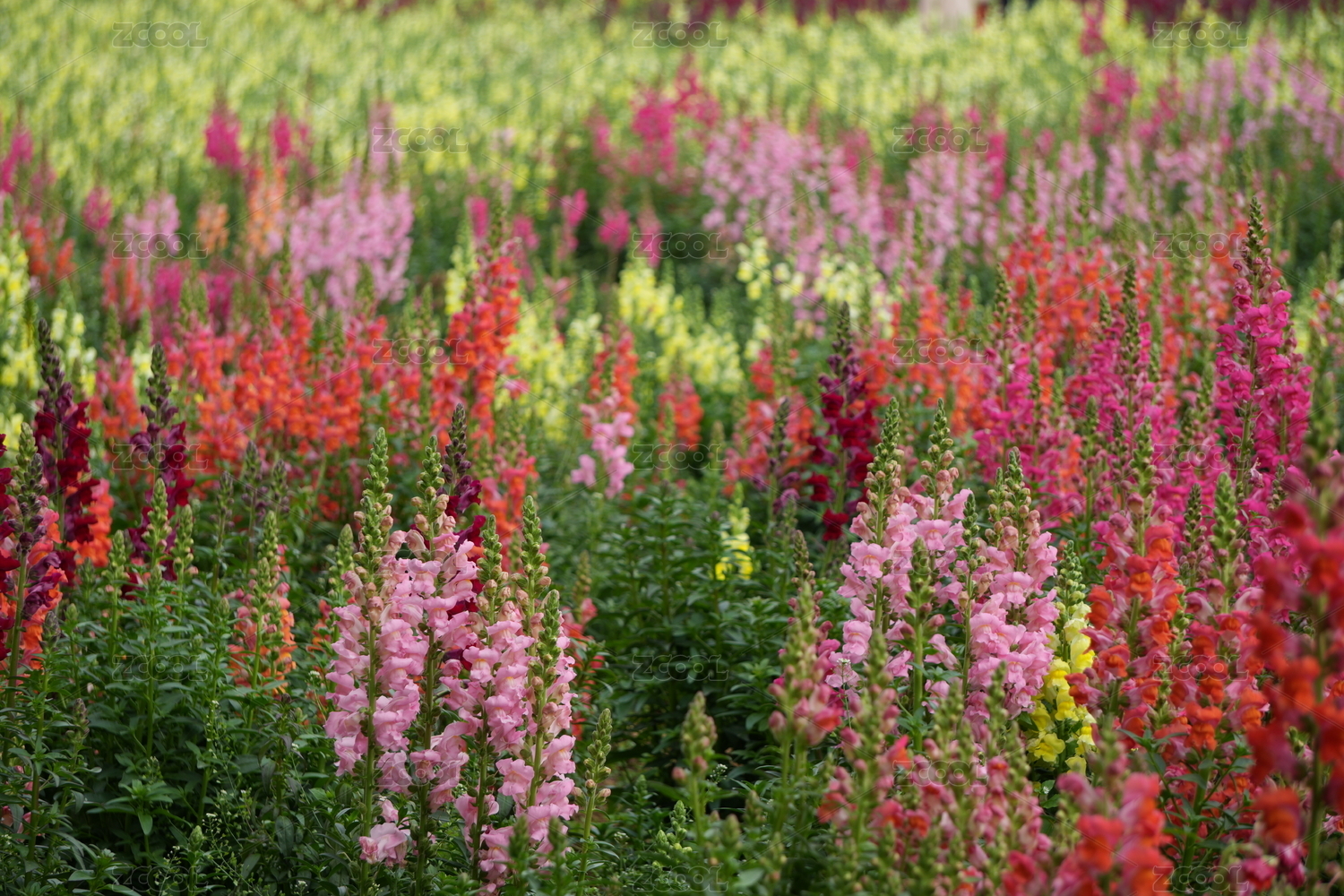 花园里美丽盛开的各种颜色金鱼草花朵花海