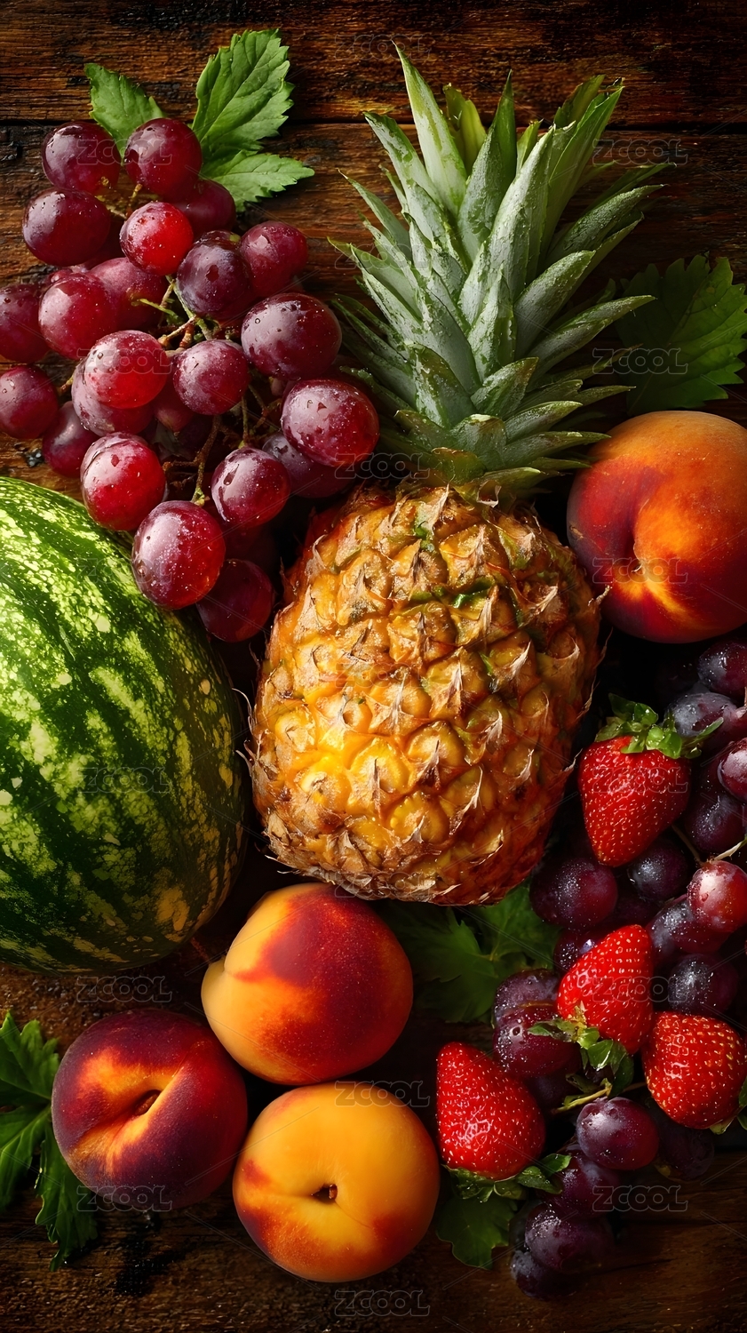 苹果葡萄梨新鲜水果堆积在一起的水果