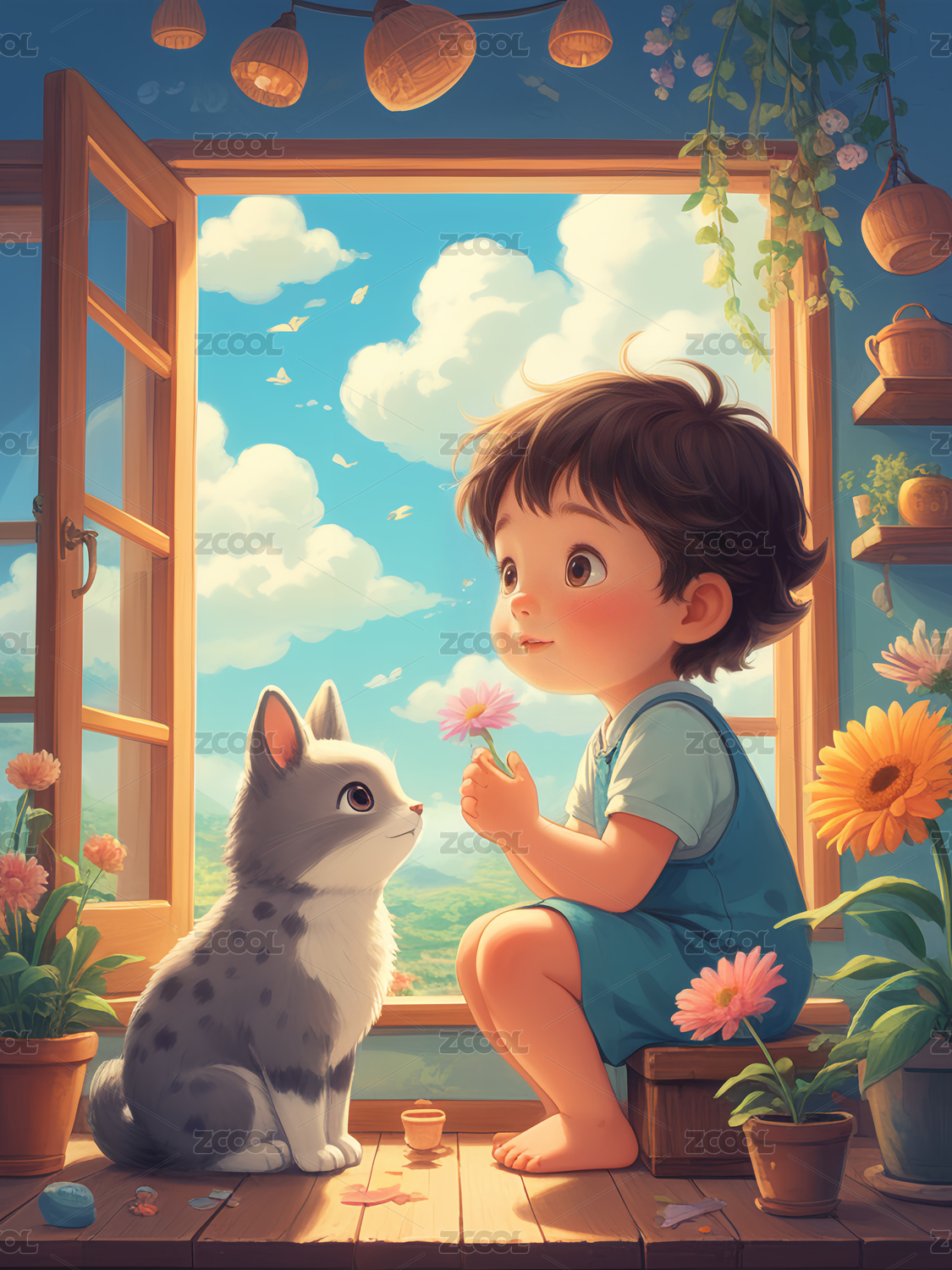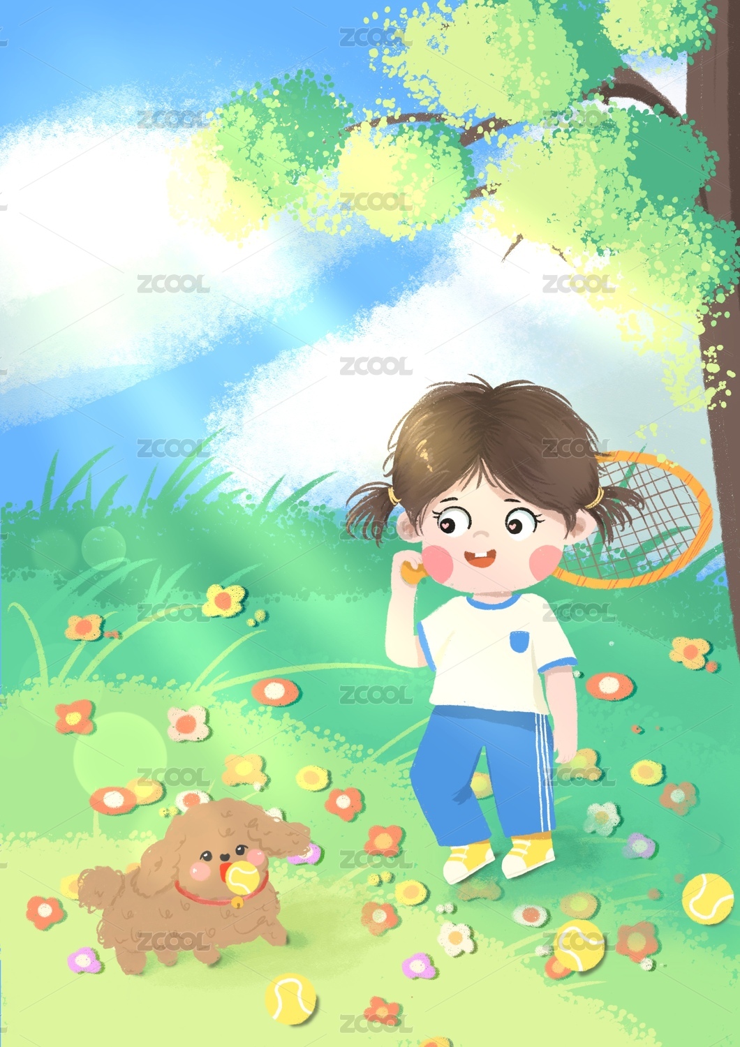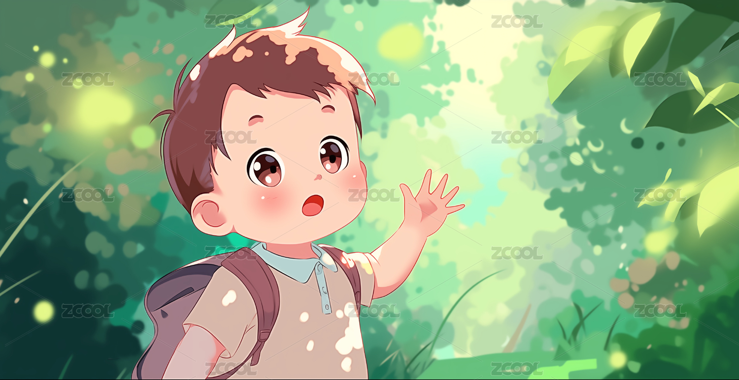 插画,春天,夏天,图像,传统,等待,含蓄,男孩,全身像,动作