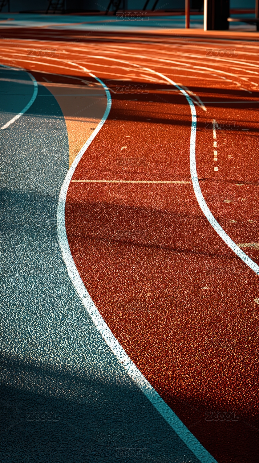 跑道视角俯瞰塑胶跑道边缘纹理色彩光影