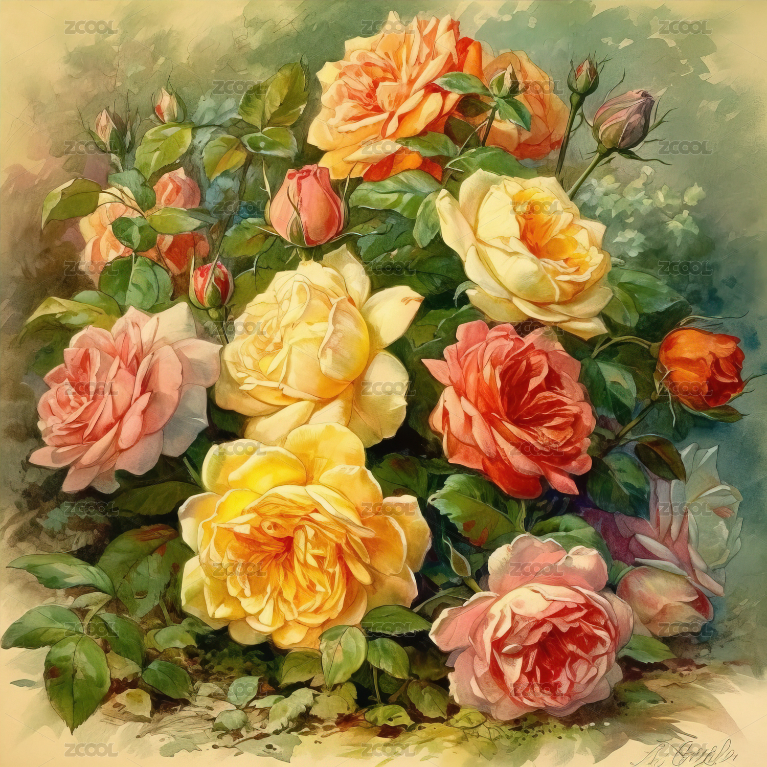 情人节中国风爱情表白四方连续玫瑰绘画插画