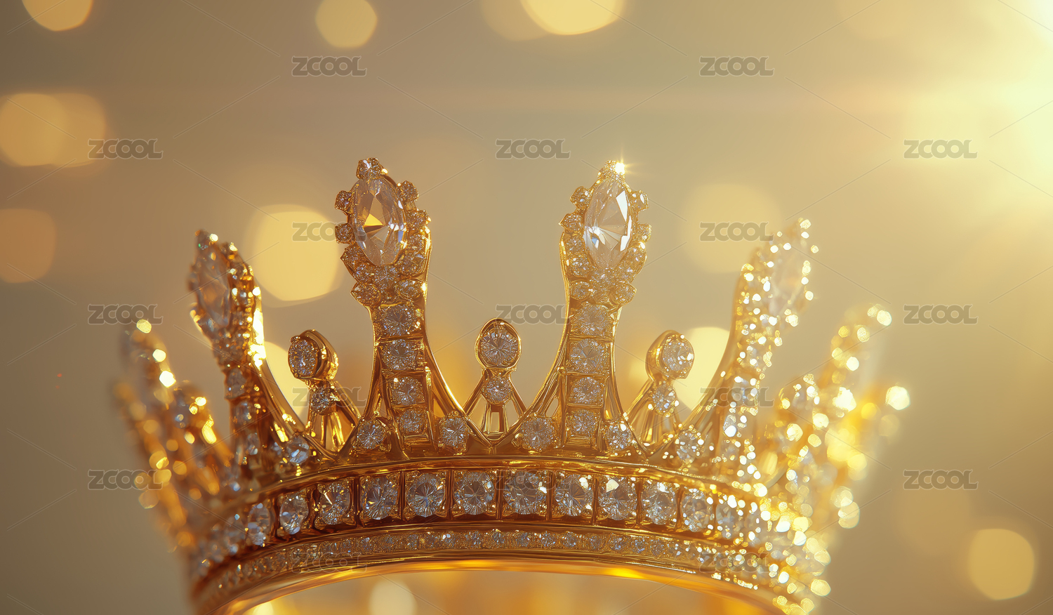 3D金色钻石皇冠光斑背景