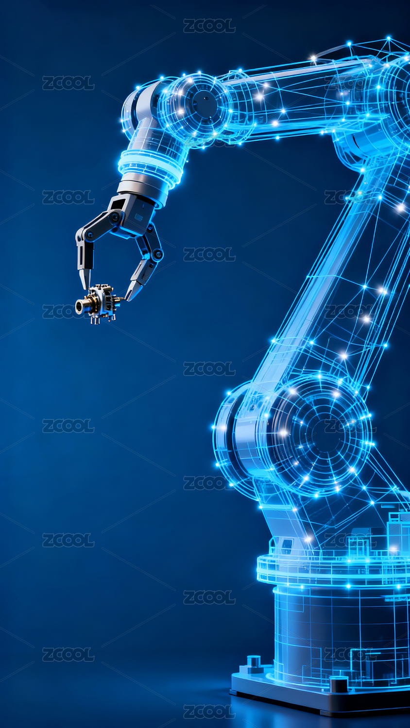 三维抽象概念新能源智慧驾驶透明挖掘机