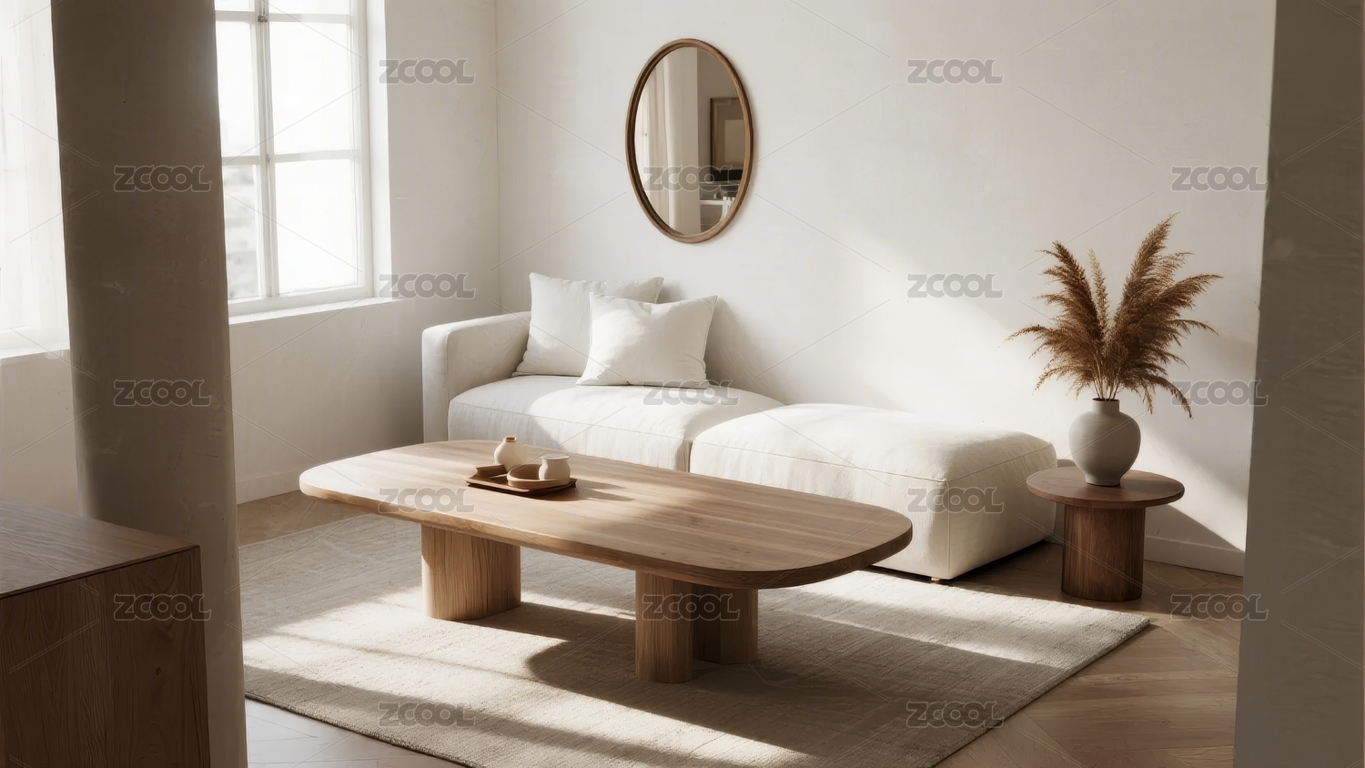 室内,休息区,长椅,镜子,装饰品,靠垫,窗户,自然光,简约,风格