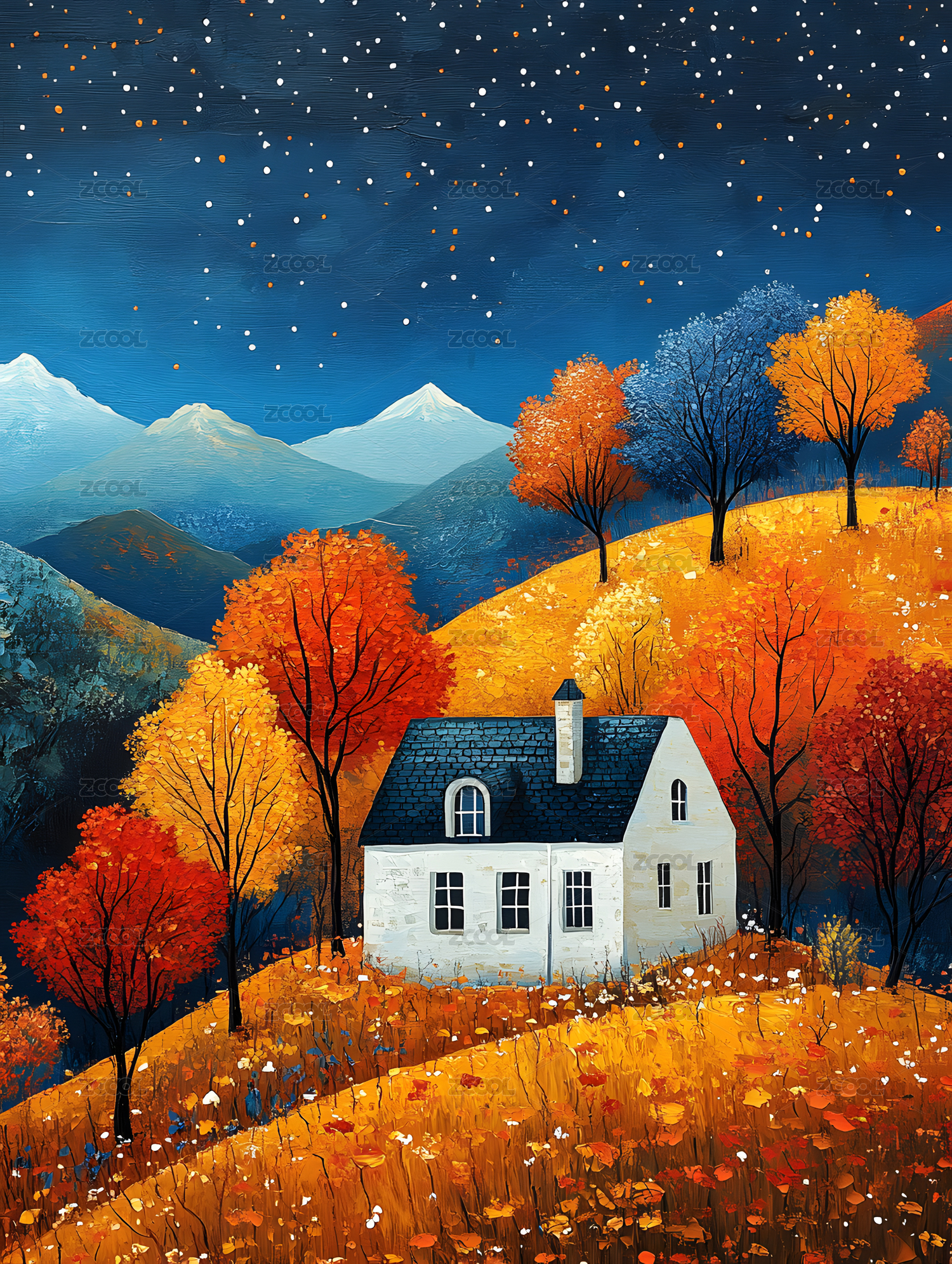 艺术,极简,自然,唯美,意境,色彩,静谧,宁静,山村,秋景