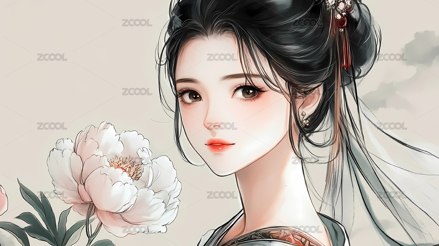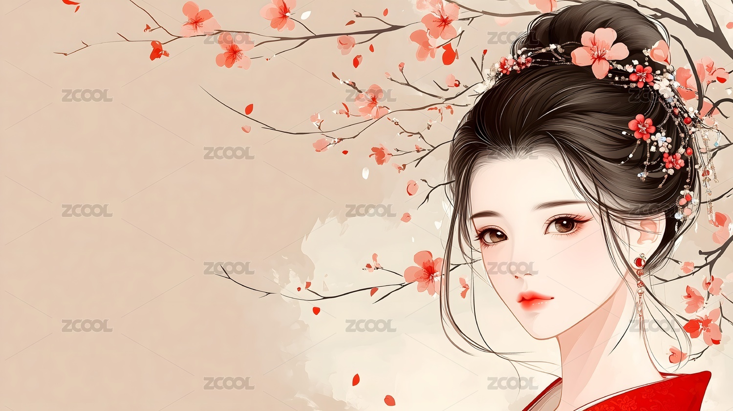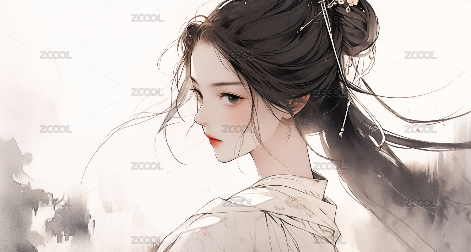 意境,背景,壁纸,艺术,绘画,女性,东方女性,插画,水彩,古风