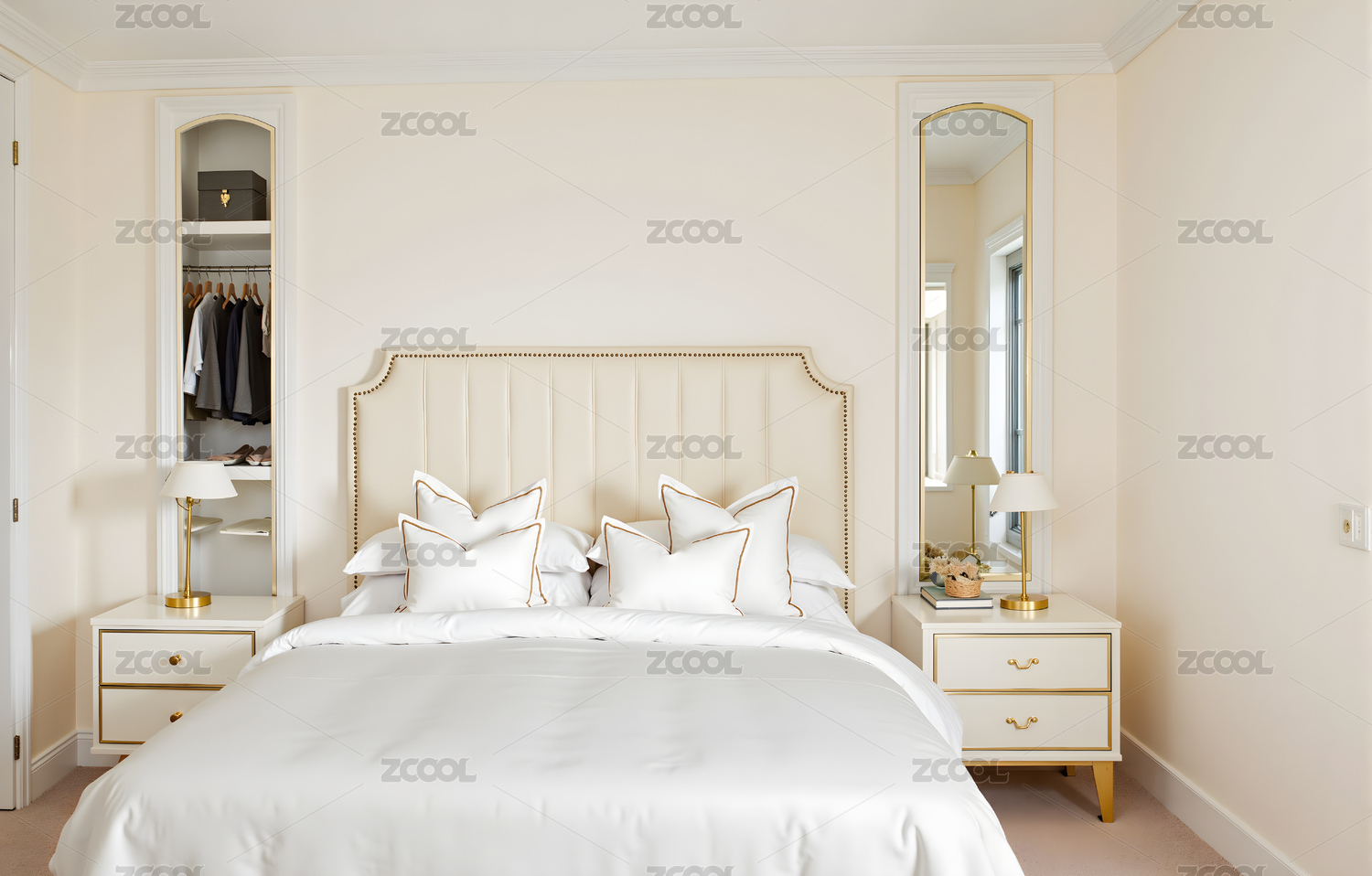 室内,装饰,台灯,衣物,卧室,床铺,床头,衣柜,枕头,摆件