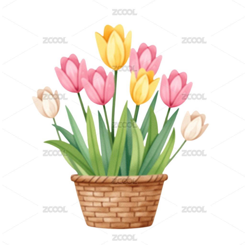 郁金香,花篮,鲜花,花卉,春天,礼物,装饰,水彩,绘画,花束