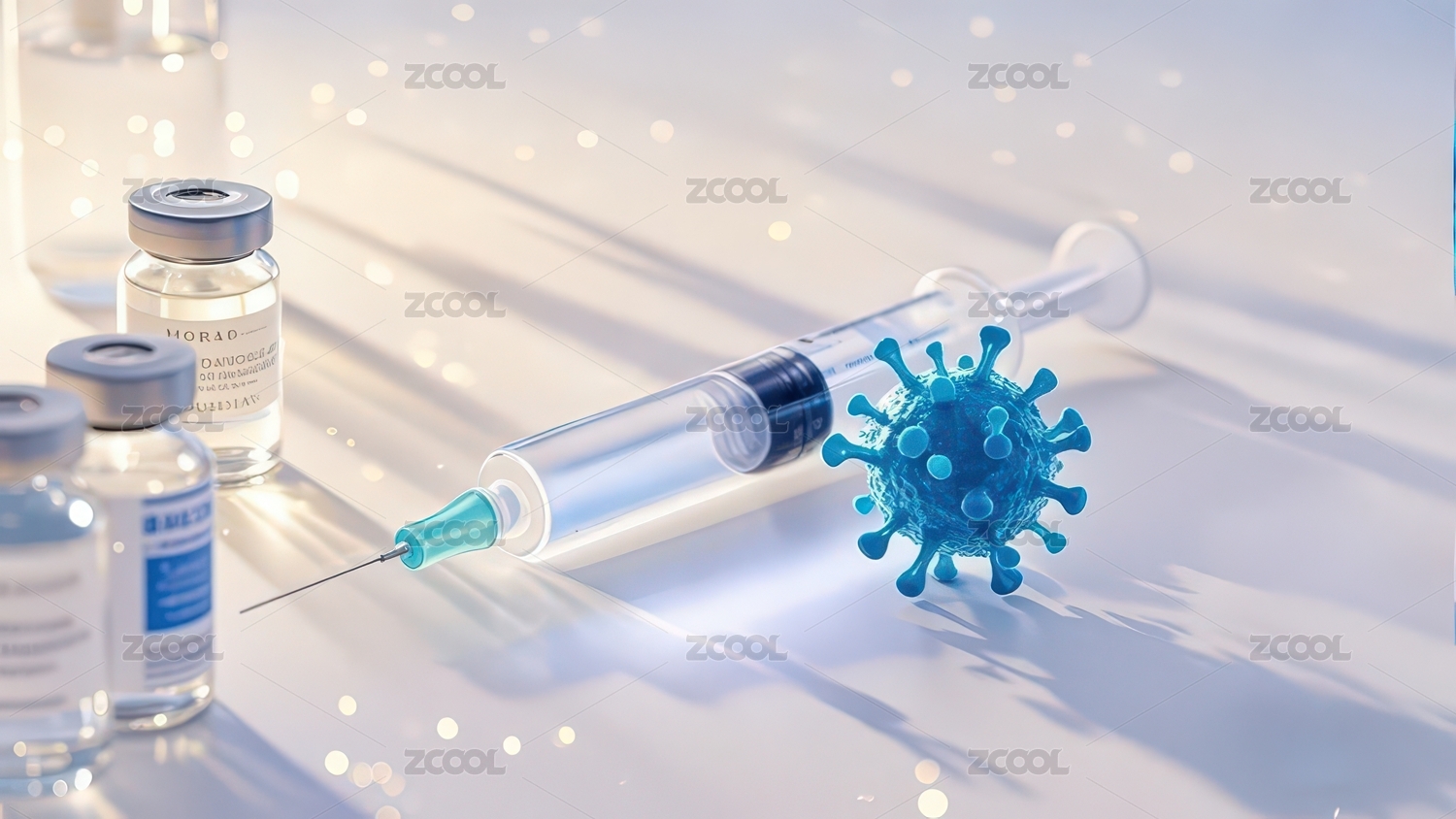 病毒背景里的疫苗和注射器针管,医疗概念图