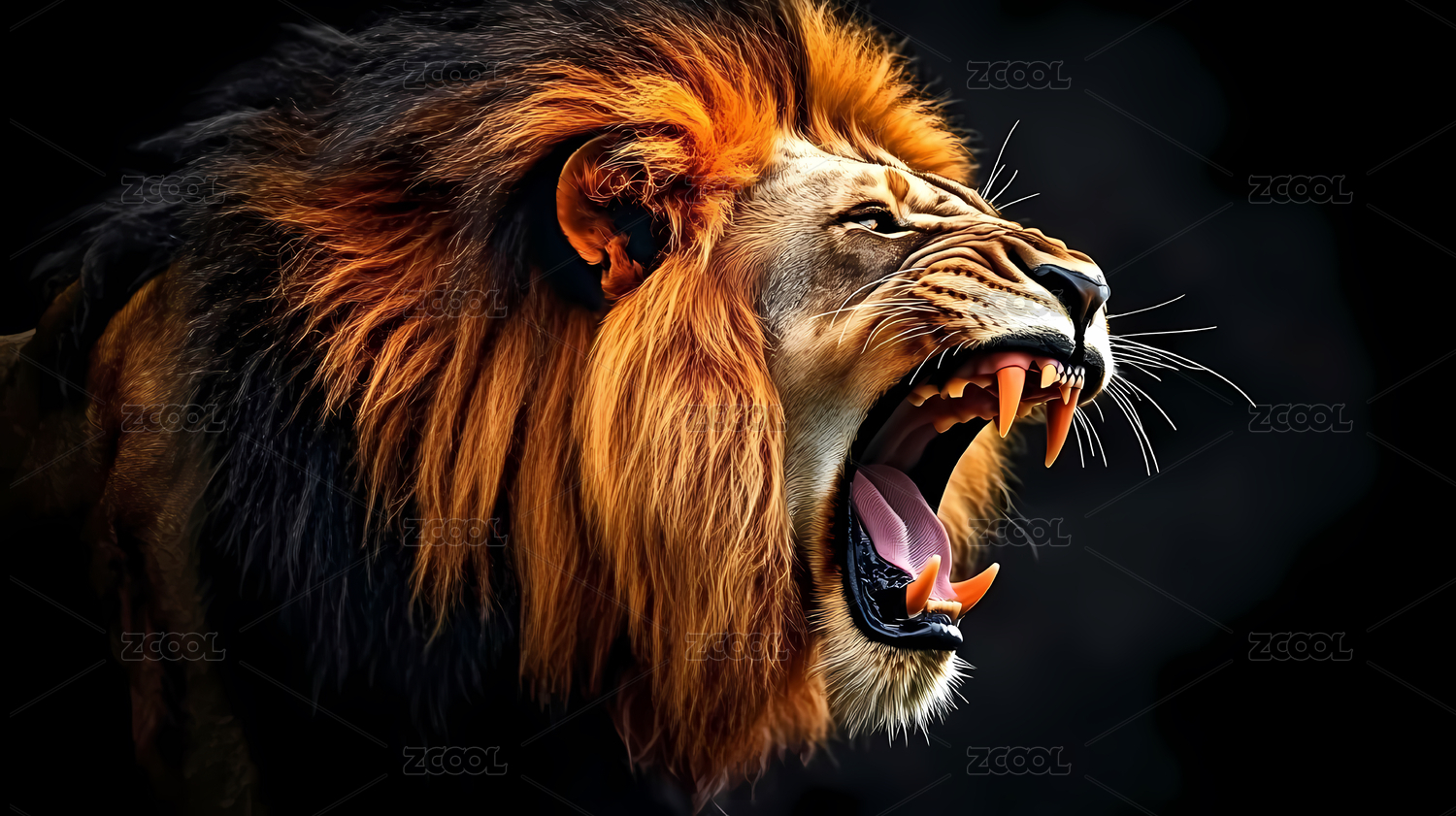 蓝色,黑色,橙色,表情,狮子,深棕,咆哮,鬃毛,牙齿,力量
