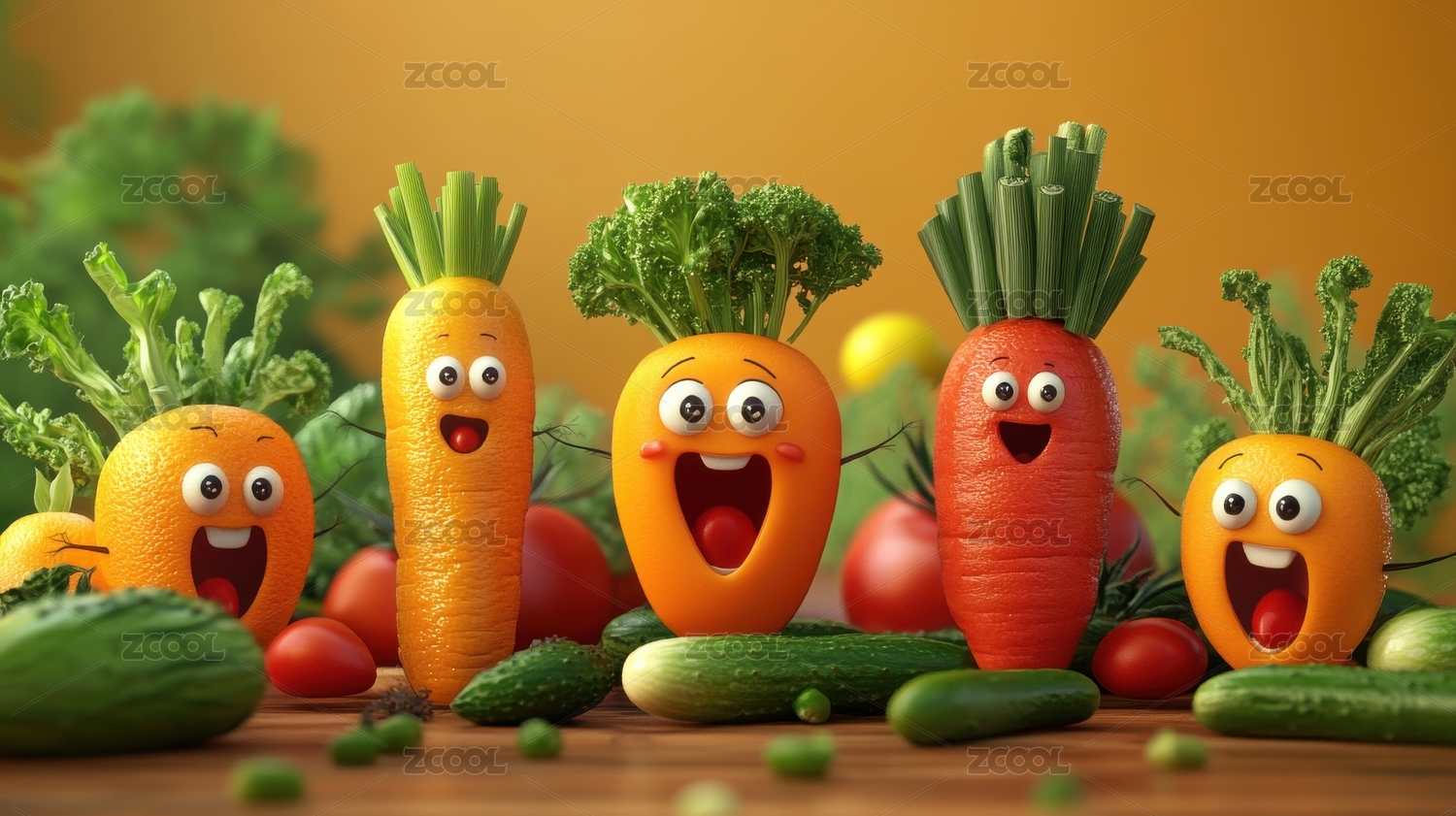 拟人化胡萝卜与蔬菜的欢乐场景