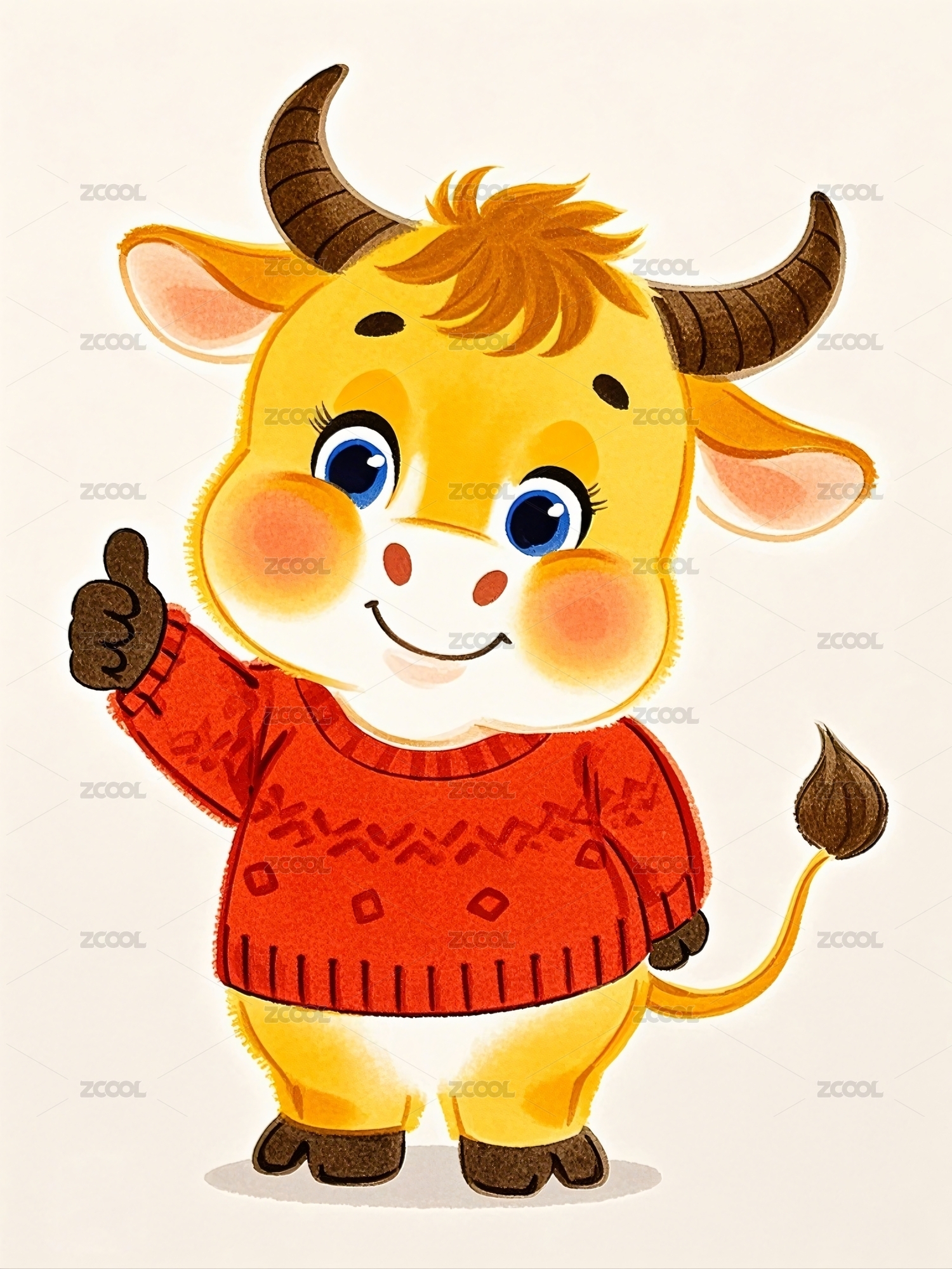 牛,小牛,牛犊,黄牛,金牛,生肖,牛年,动物,可爱,Q版